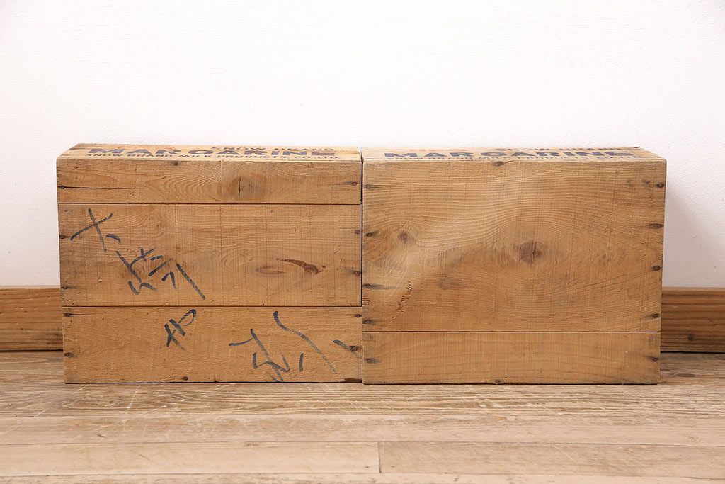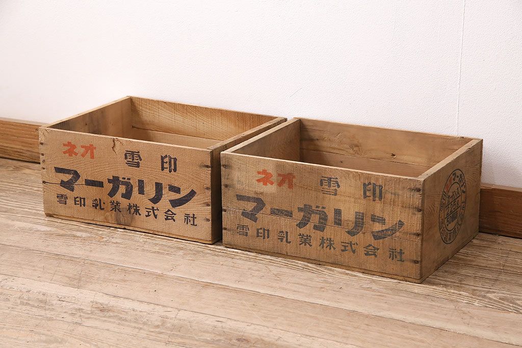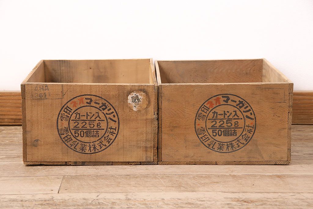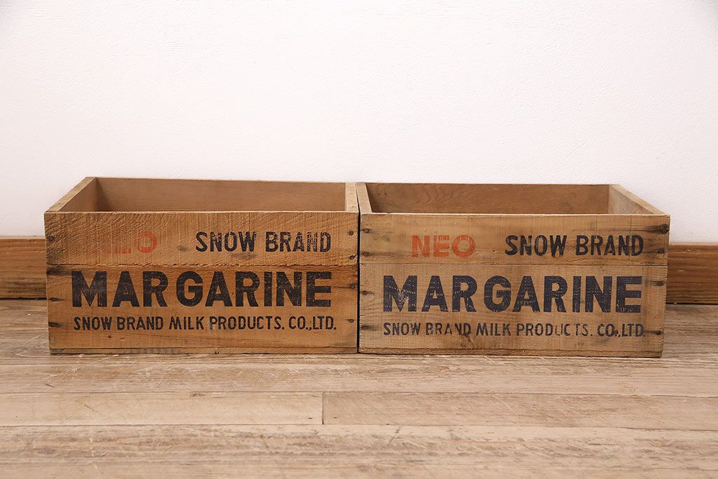 小物収納・トランク > 昭和レトロ アンティーク雑貨 英語のロゴがおしゃれ!雪印マーガリンの木箱2個セット(収納ボックス、収納箱、看板)(R-048806)
