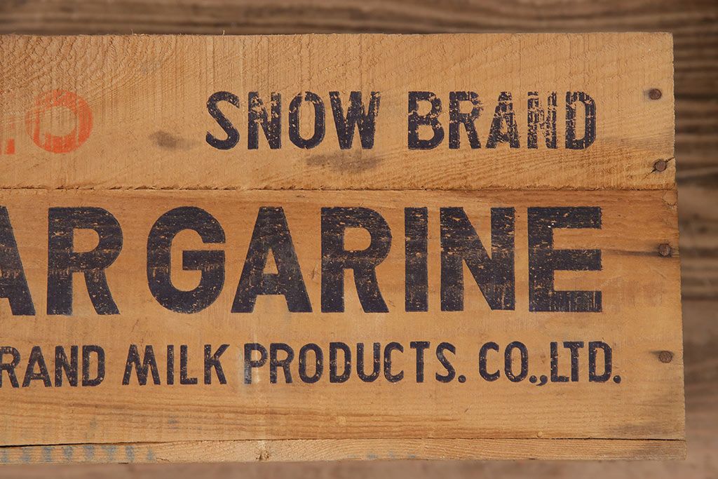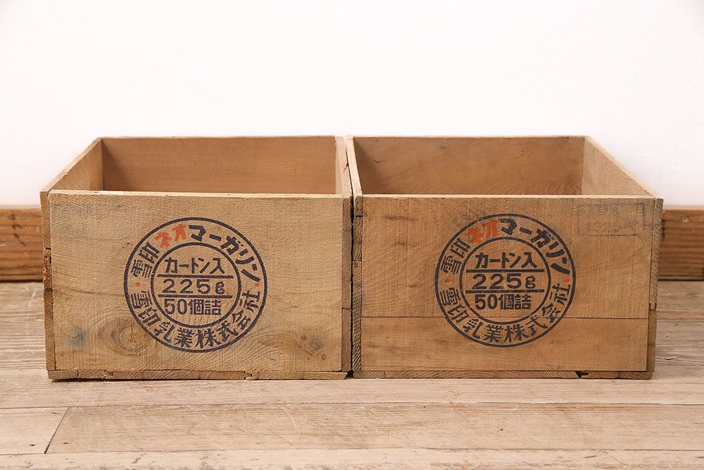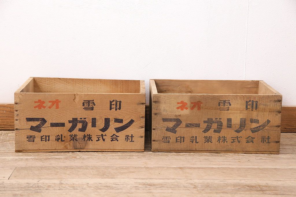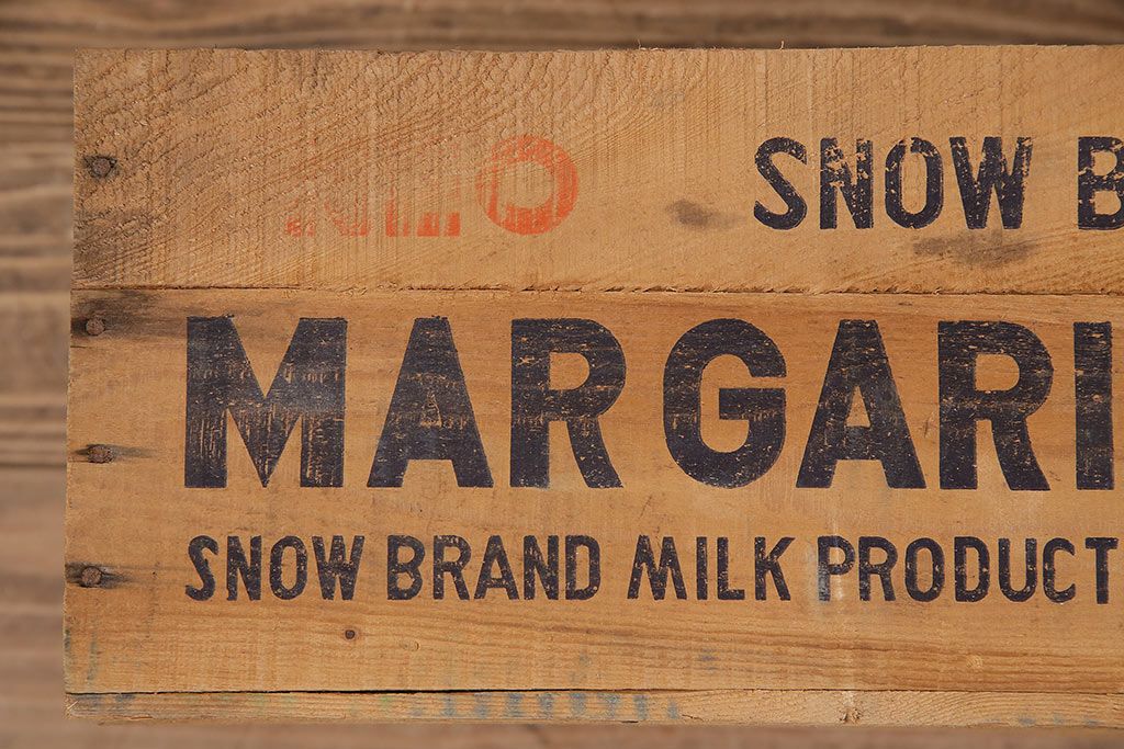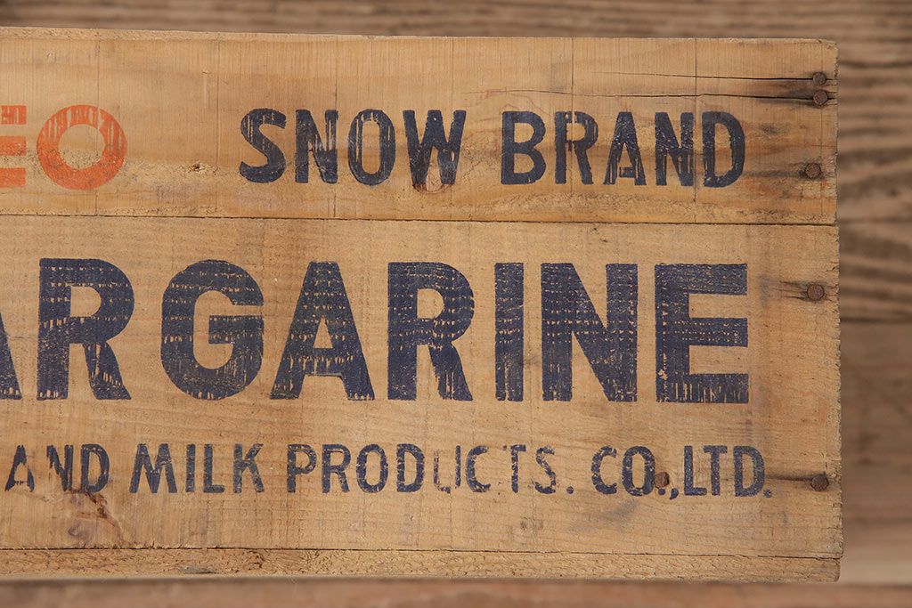 小物収納・トランク> 木箱 > 昭和レトロ アンティーク雑貨 英語のロゴがおしゃれ!雪印マーガリンの木箱2個セット(収納ボックス、収納箱、看板)(R-048806)
