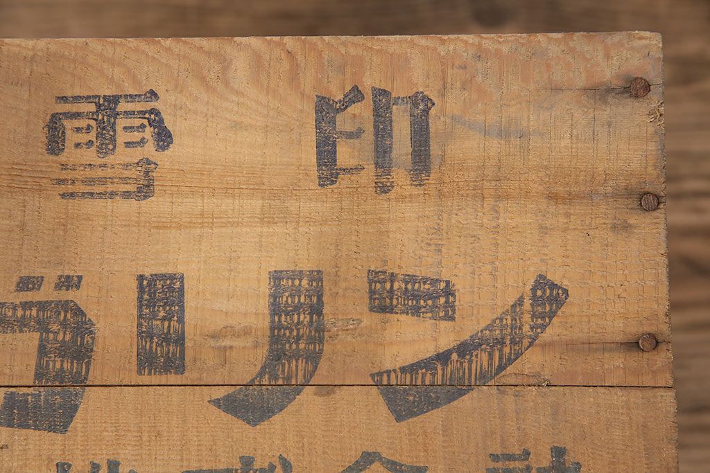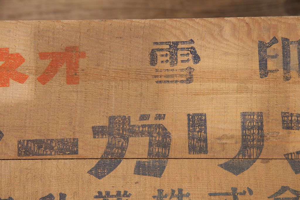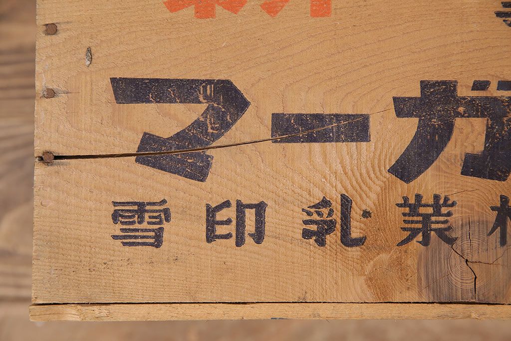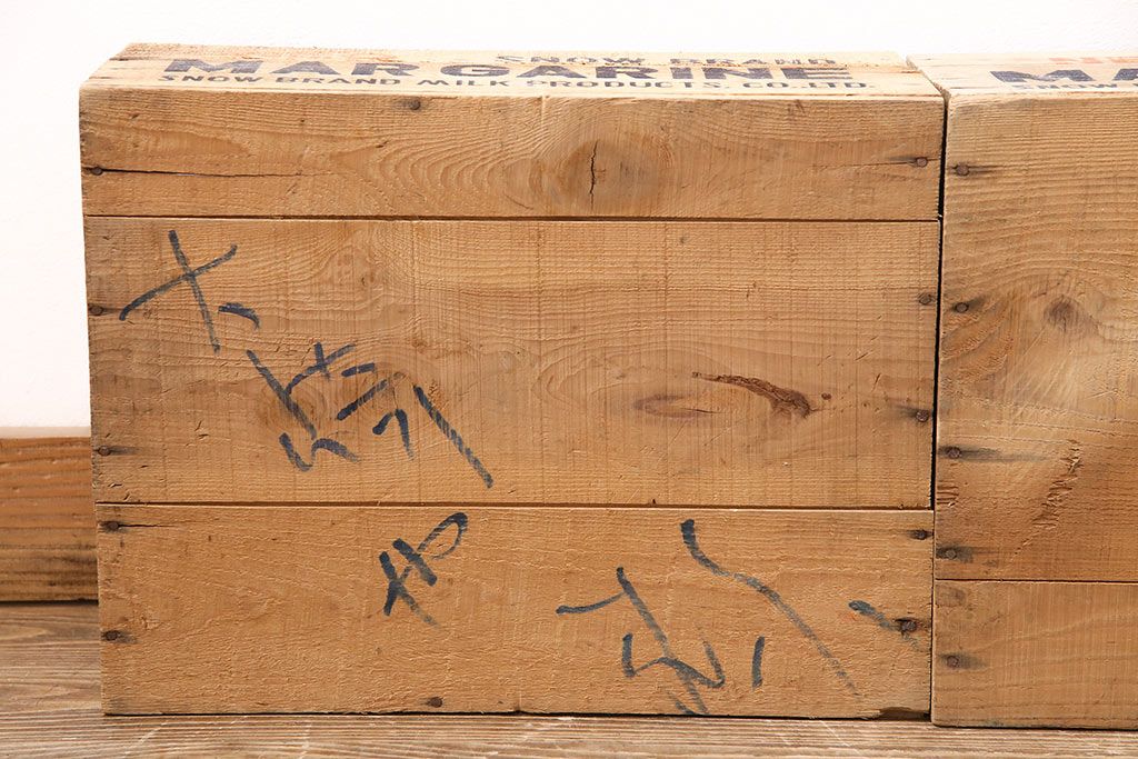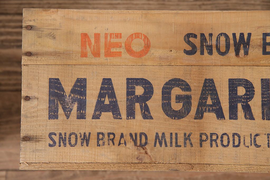 小物収納・トランク> 木箱 > 昭和レトロ アンティーク雑貨 英語のロゴがおしゃれ!雪印マーガリンの木箱2個セット(収納ボックス、収納箱、看板)(R-048806)