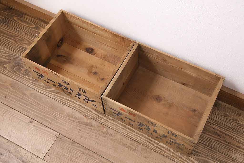 昭和レトロの雰囲気あふれる木箱2個セットです。