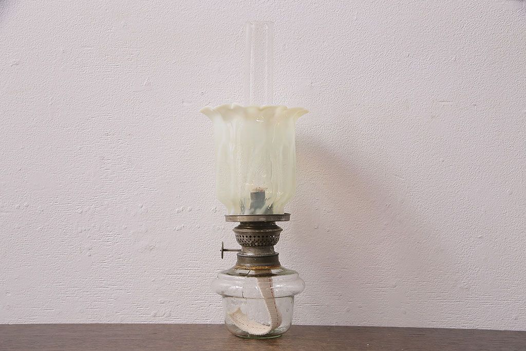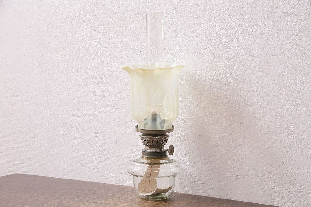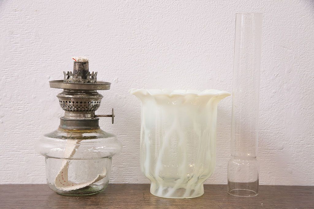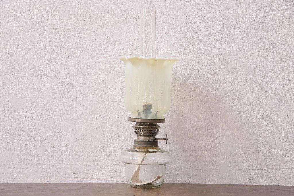 油壺は日本製、笠はアメリカ製のオイルランプです。