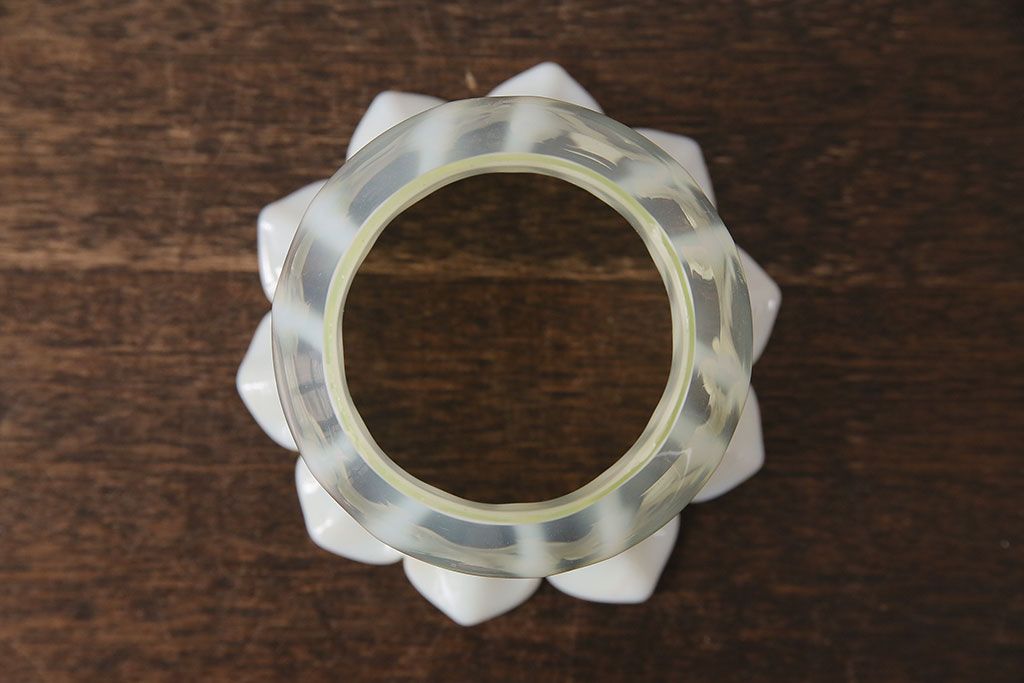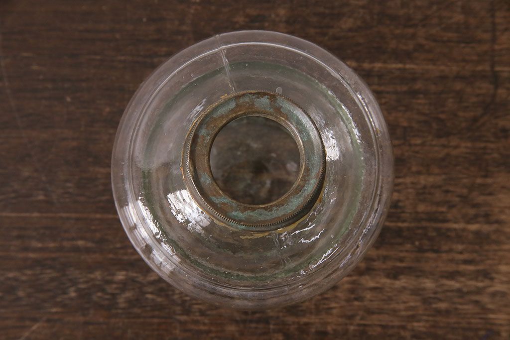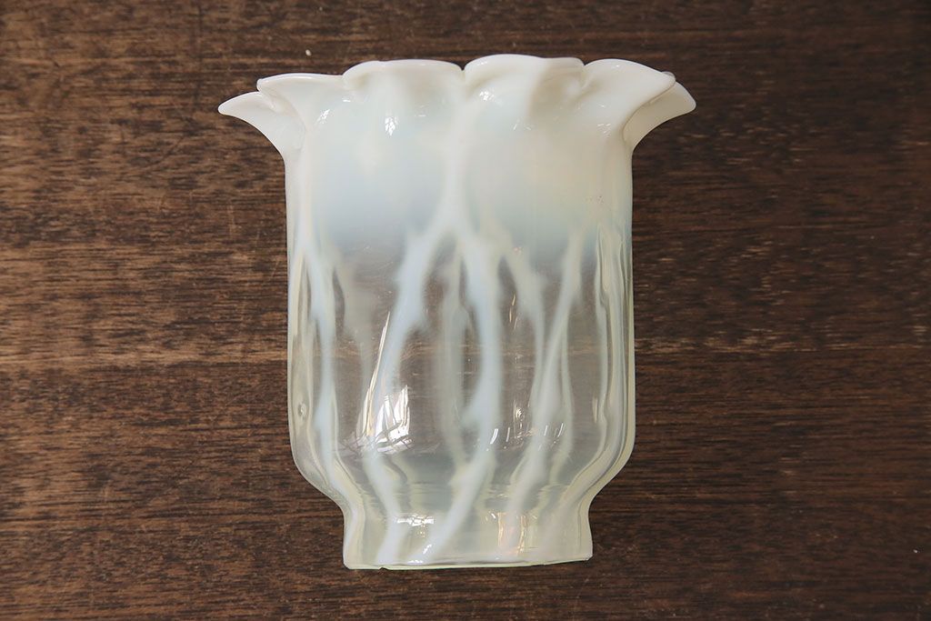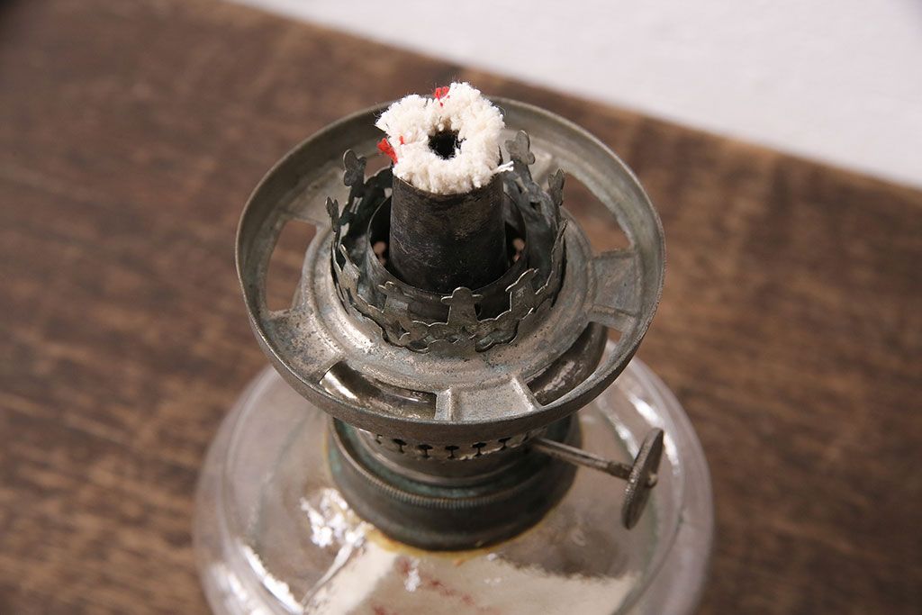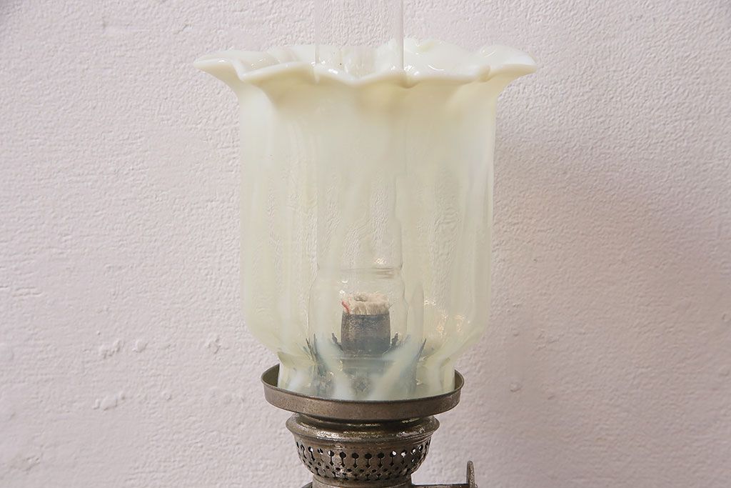 ヴィンテージ雑貨 巻き芯10番 ウランガラス 花びらのようなデザインが可愛らしいオイルランプ(卓上ランプ、油壺、テーブルランプ、ビンテージ)(R-048797)