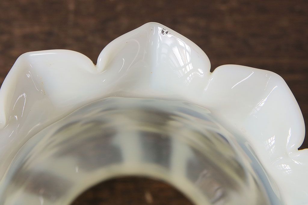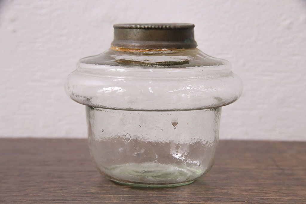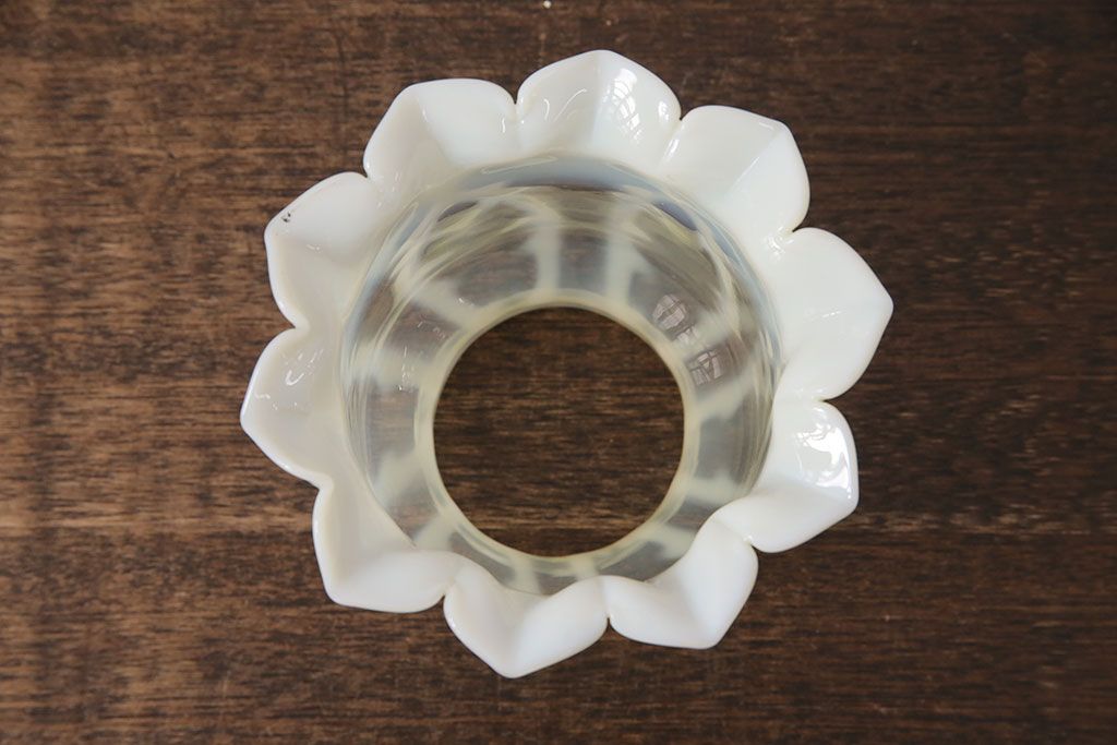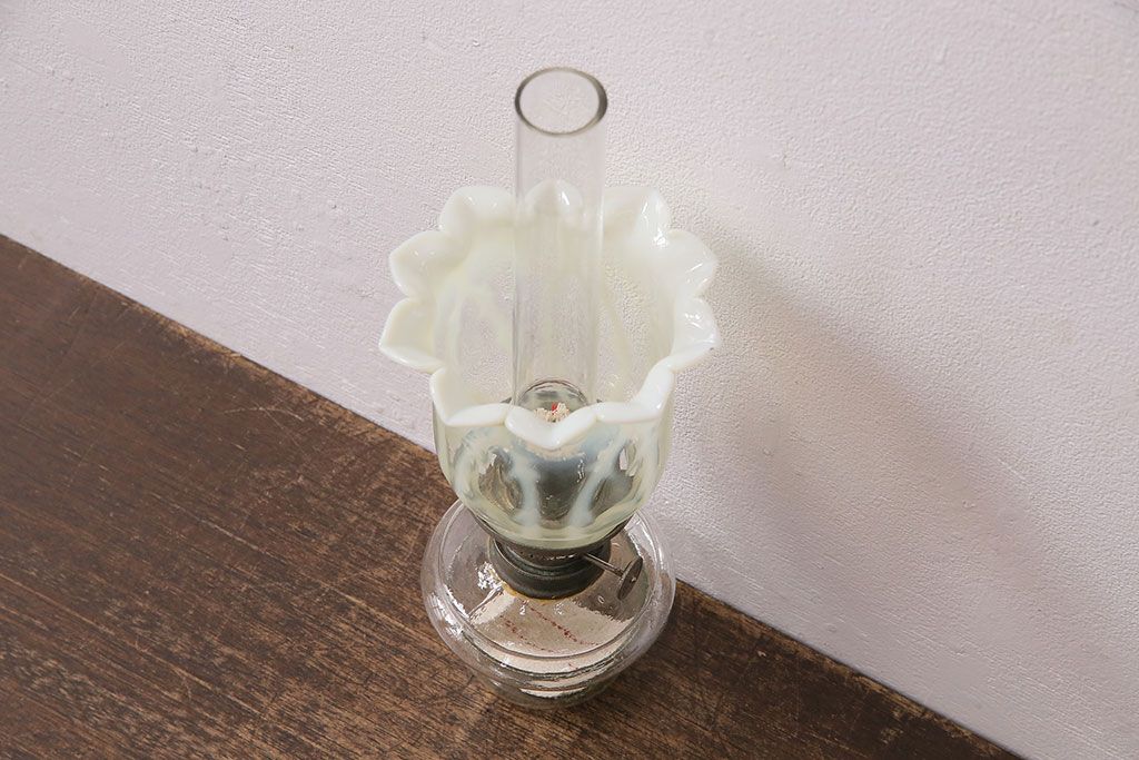 ヴィンテージ雑貨 巻き芯10番 ウランガラス 花びらのようなデザインが可愛らしいオイルランプ(卓上ランプ、油壺、テーブルランプ)(R-048797)です。