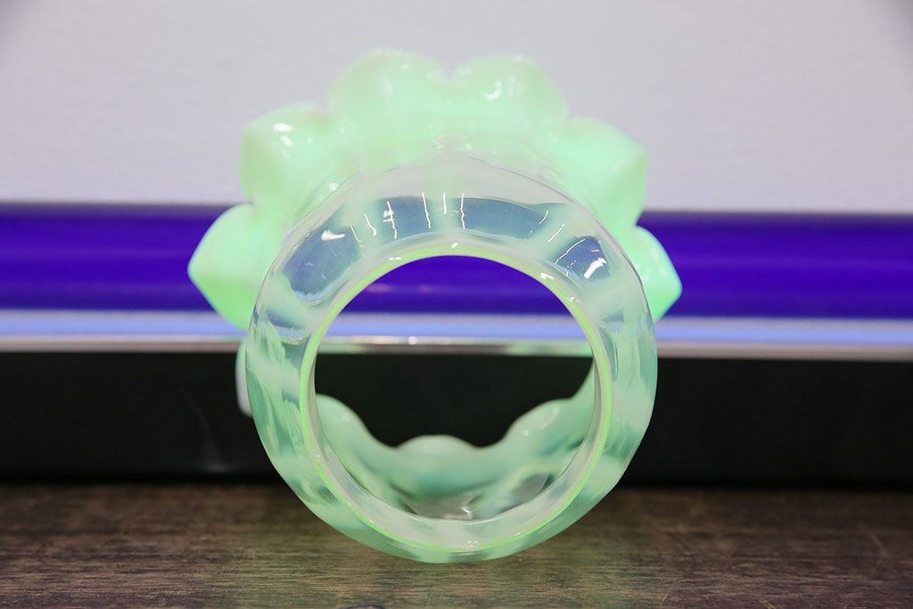 紫外線ライトに当てると緑色に光る珍しいお品です。