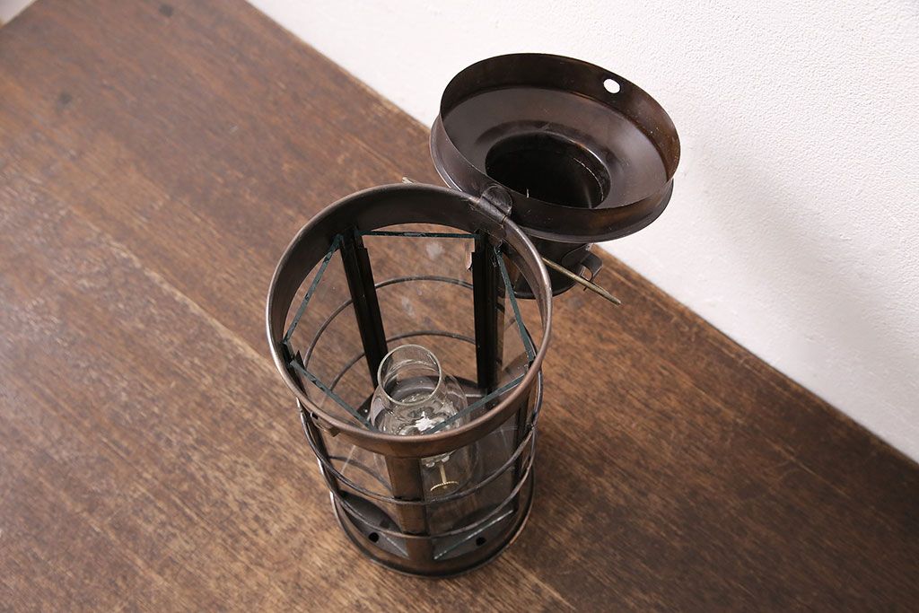 中古 棒芯4mm 持ち運びができる、ジャンクな風合いがかっこいいオイルランプ(ランタン、テーブルランプ)(R-048904)です。