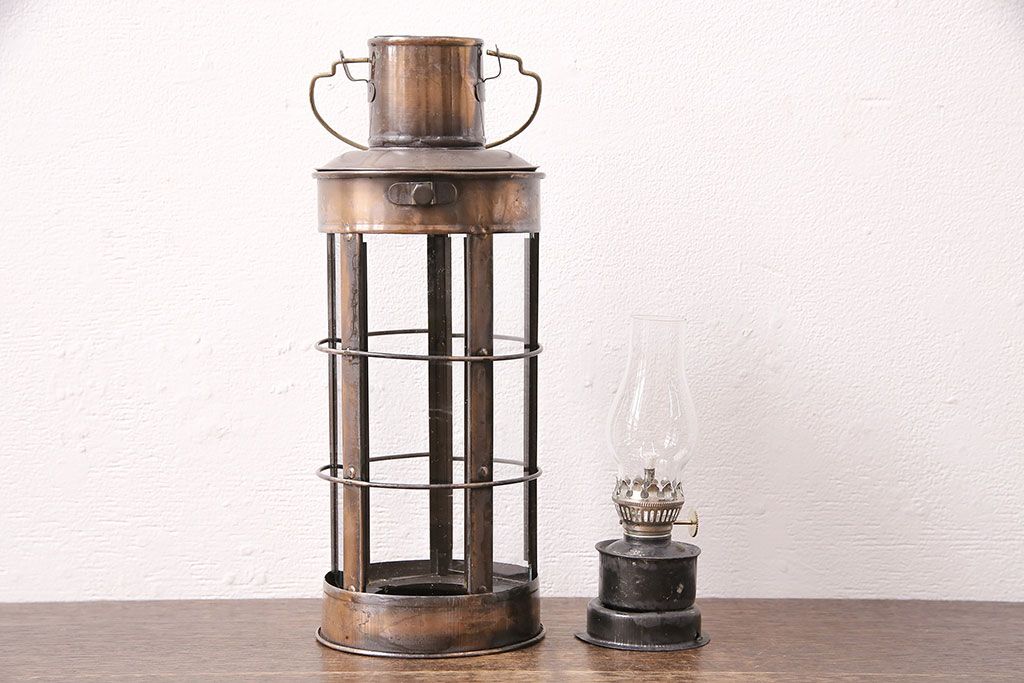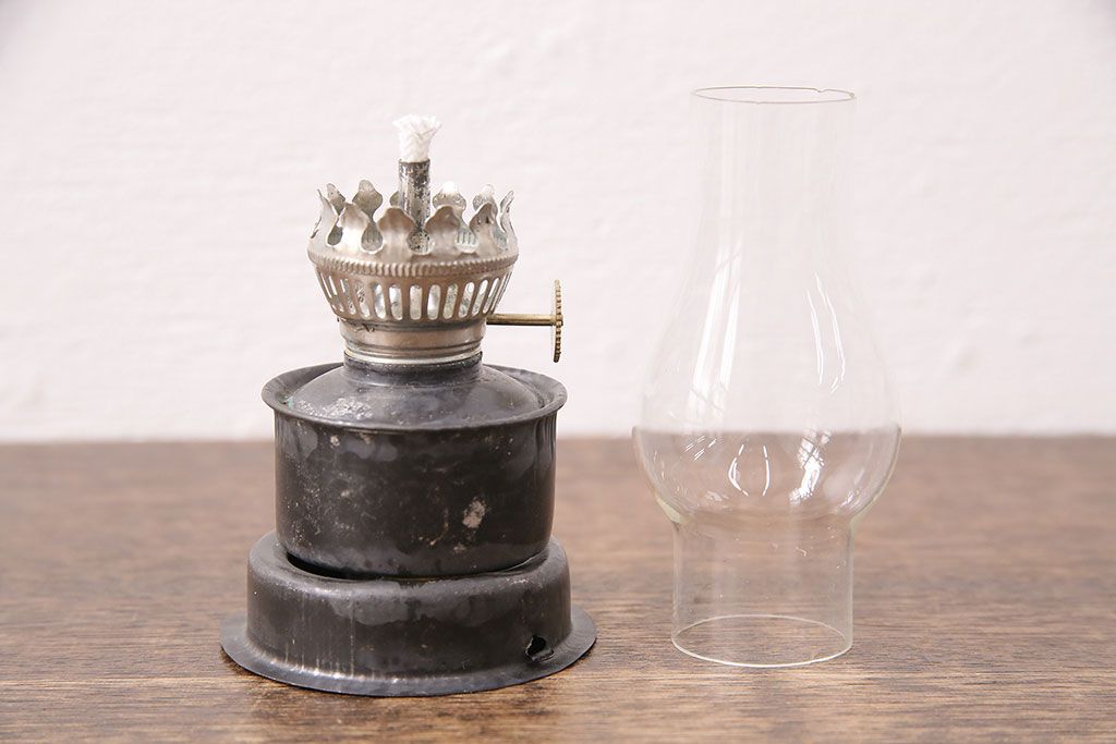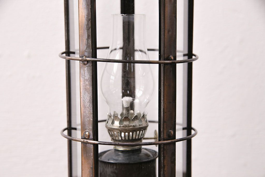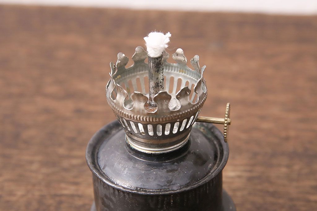 中古 棒芯4mm 持ち運びができる、ジャンクな風合いがかっこいいオイルランプ(ランタン、テーブルランプ)(R-048904)