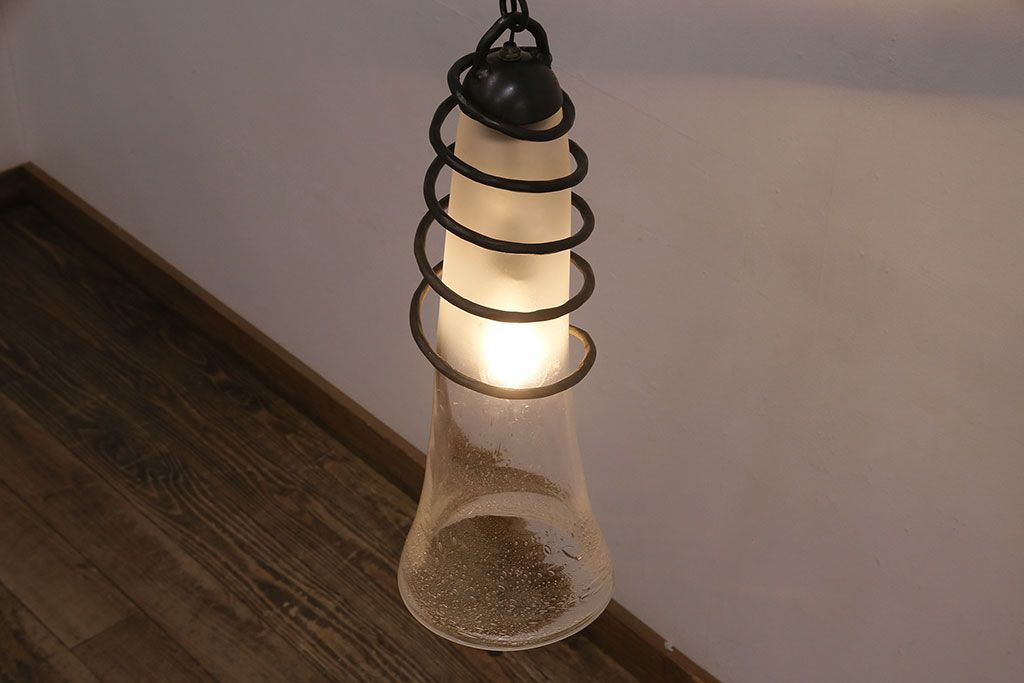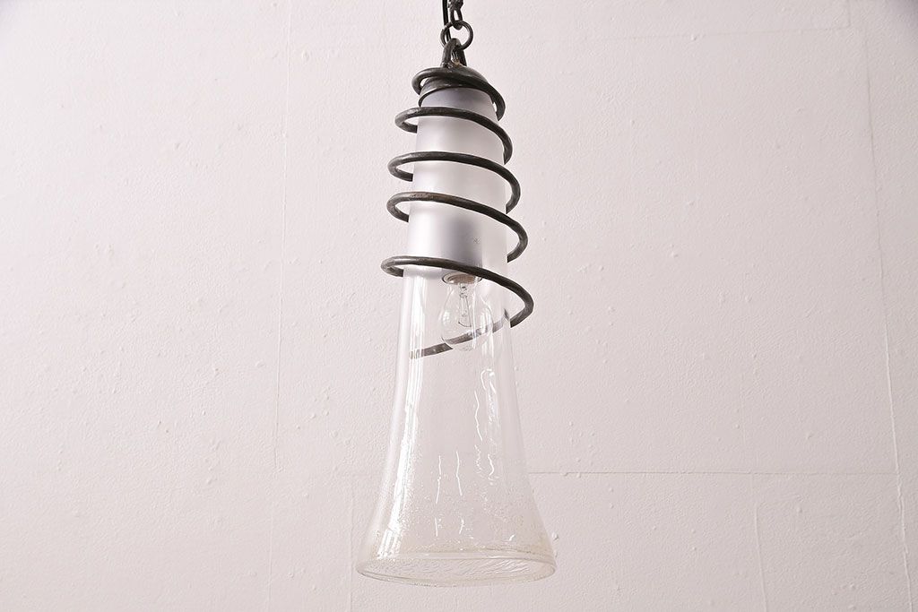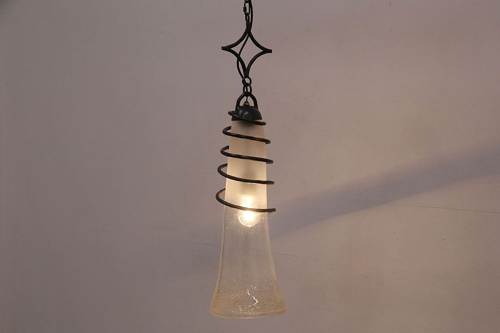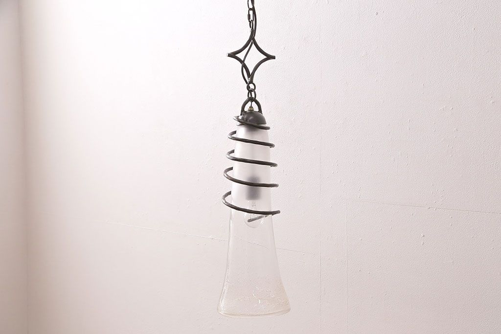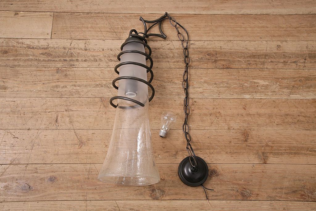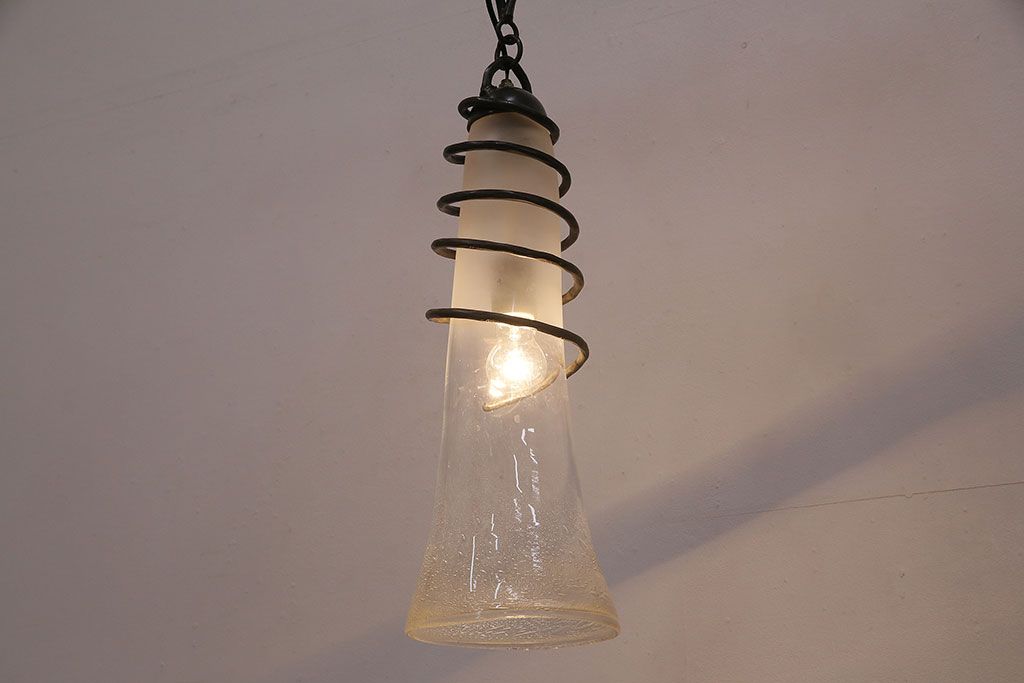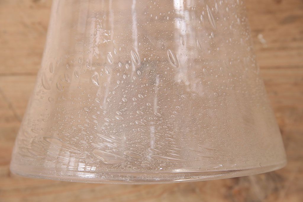 中古 アイアン 気泡ガラスがキラキラ輝くペンダント照明(天井照明、吊り下げ照明、シェード)(R-048907)です。