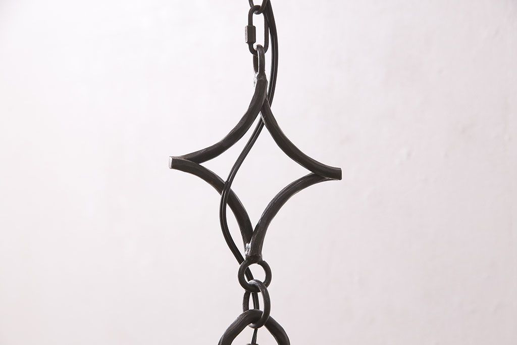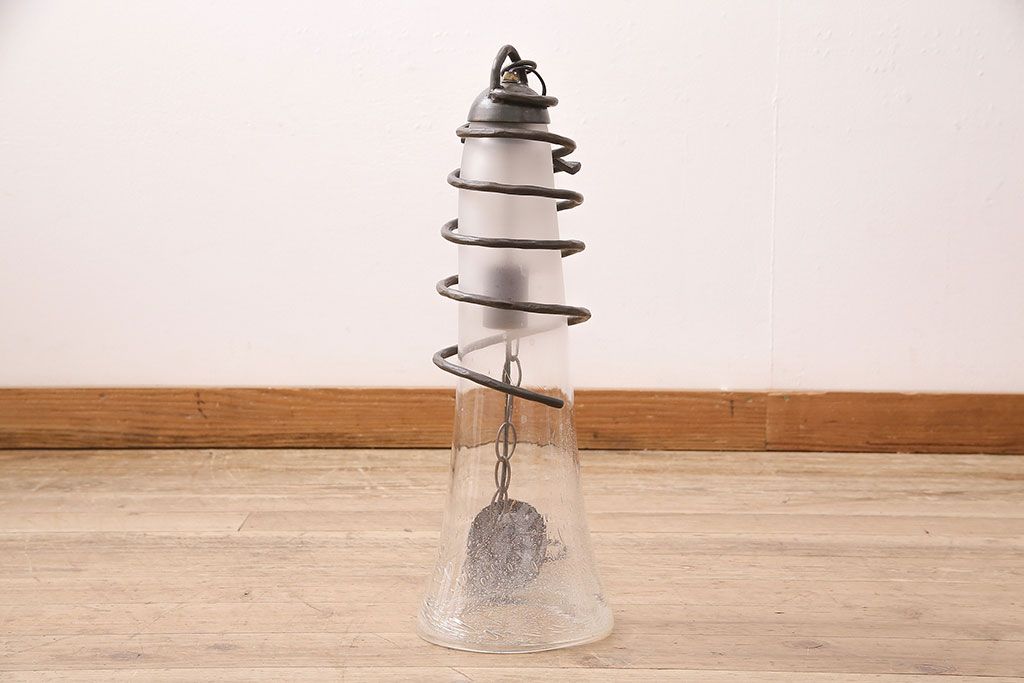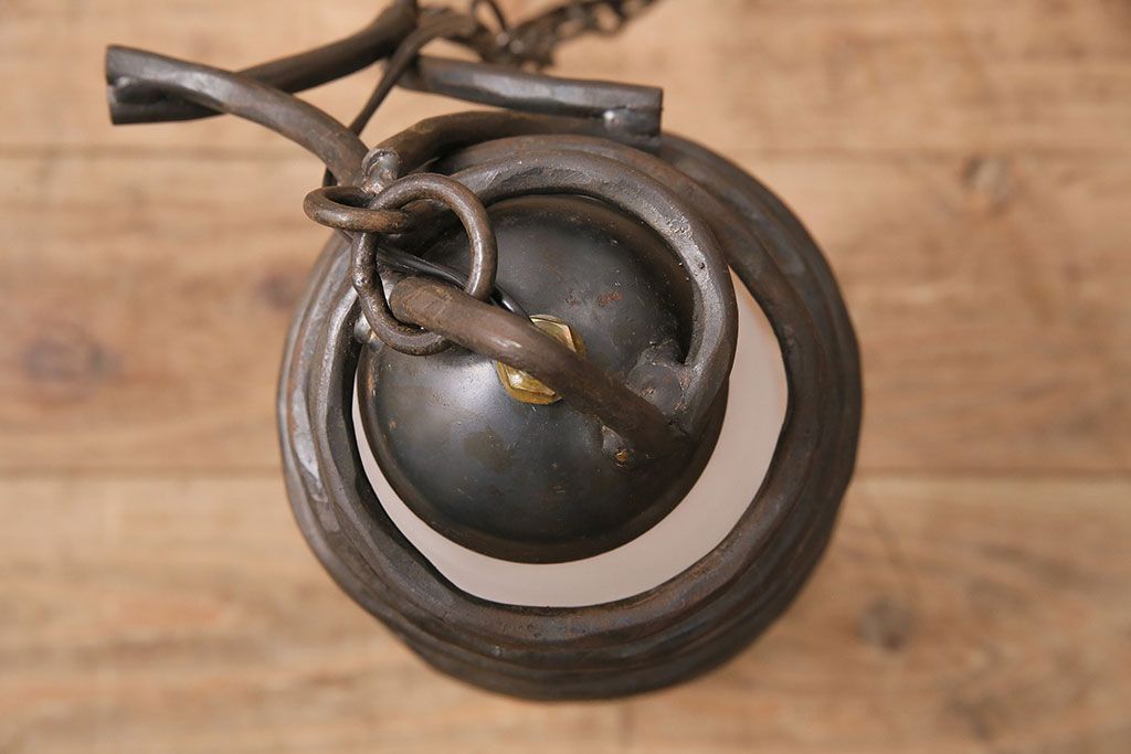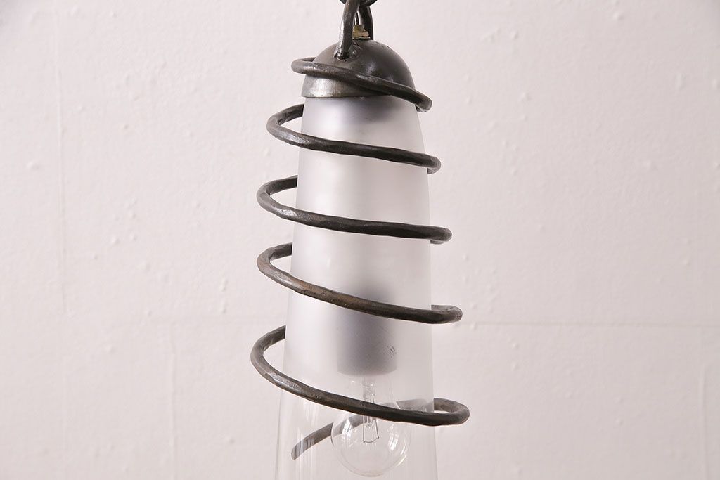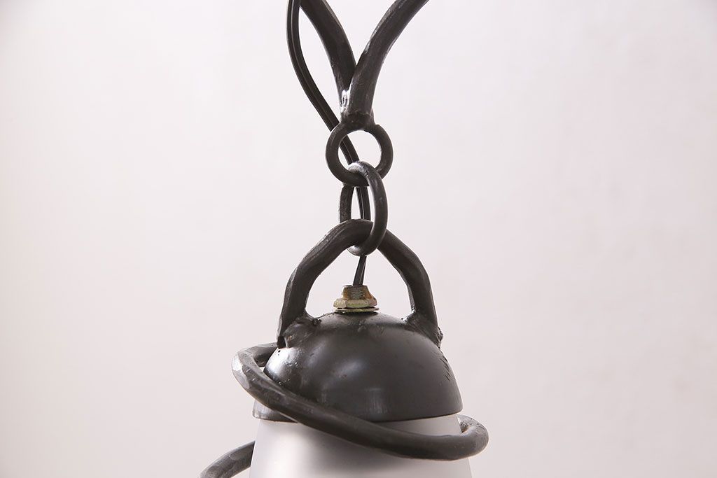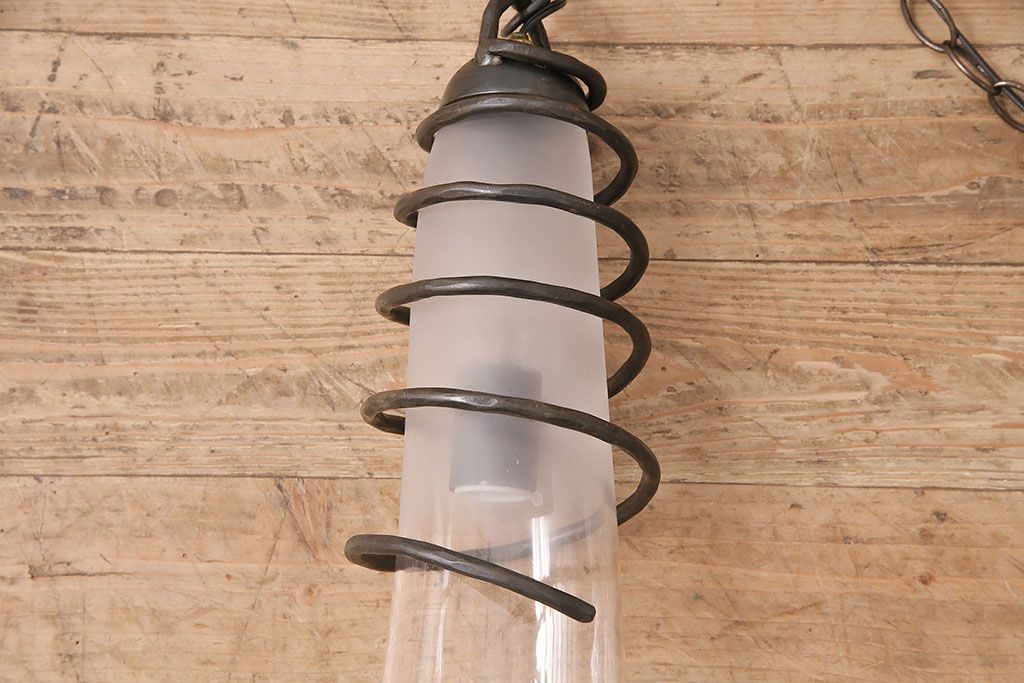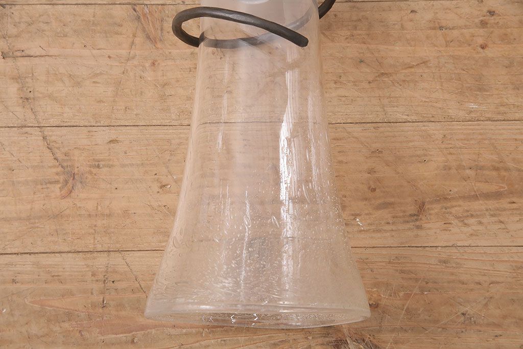 中古 アイアン 気泡ガラスがキラキラ輝くペンダント照明(天井照明、吊り下げ照明、シェード)(R-048907)です。