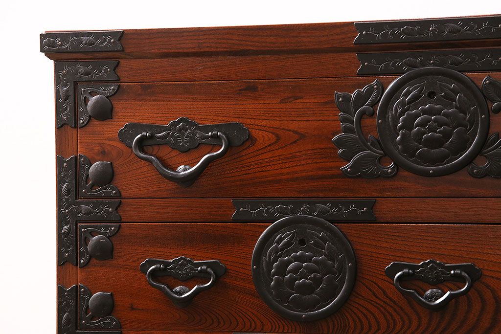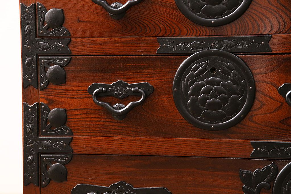 和箪笥> 衣装箪笥 > 中古美品 上手物!丁寧なつくりこみが見事な本漆塗りの仙台箪笥(衣装箪笥、和タンス、引き出し)(R-049054)