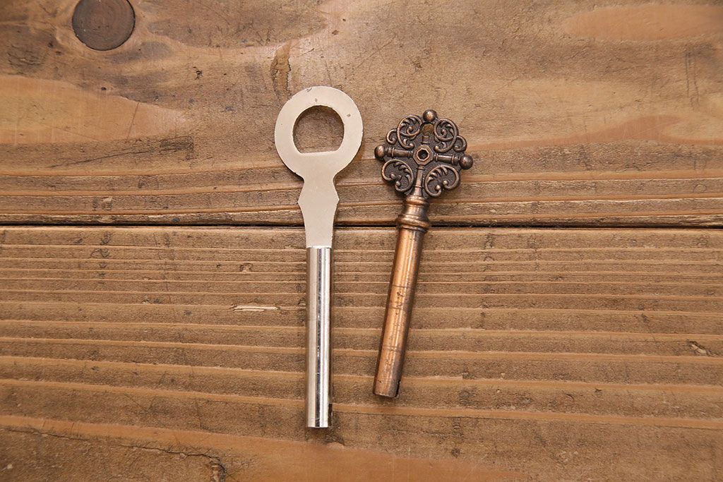 鍵は付属します。画像にありますように、袋に入れお付けします。スムーズに動くように調整していますが、あくまでも古いものや中古品ですので、長期の使用保証は出来かねます。ご購入後不具合が発生した場合は、当店でサポートさせていただきますので、お気軽にご相談くださいませ。