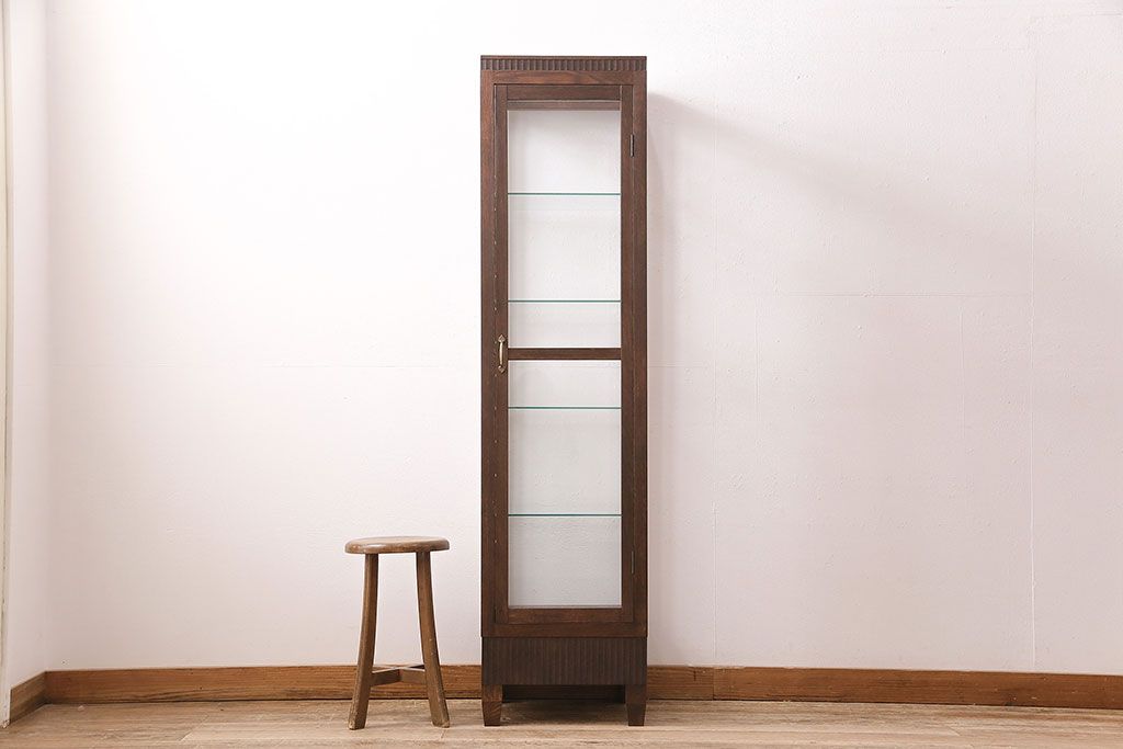 【オーダー注文・受注生産商品】ラフジュ工房オリジナル 上品なアンティークデザインが魅力のナラ材製縦型ガラスケース(ショーケース、陳列棚)(R-049005)です。