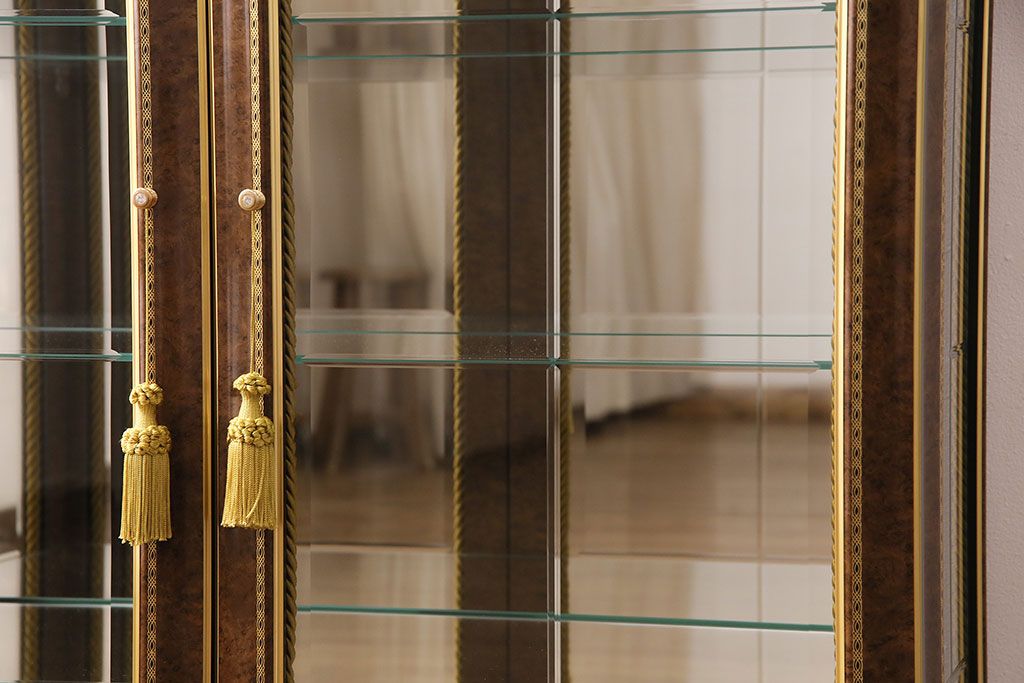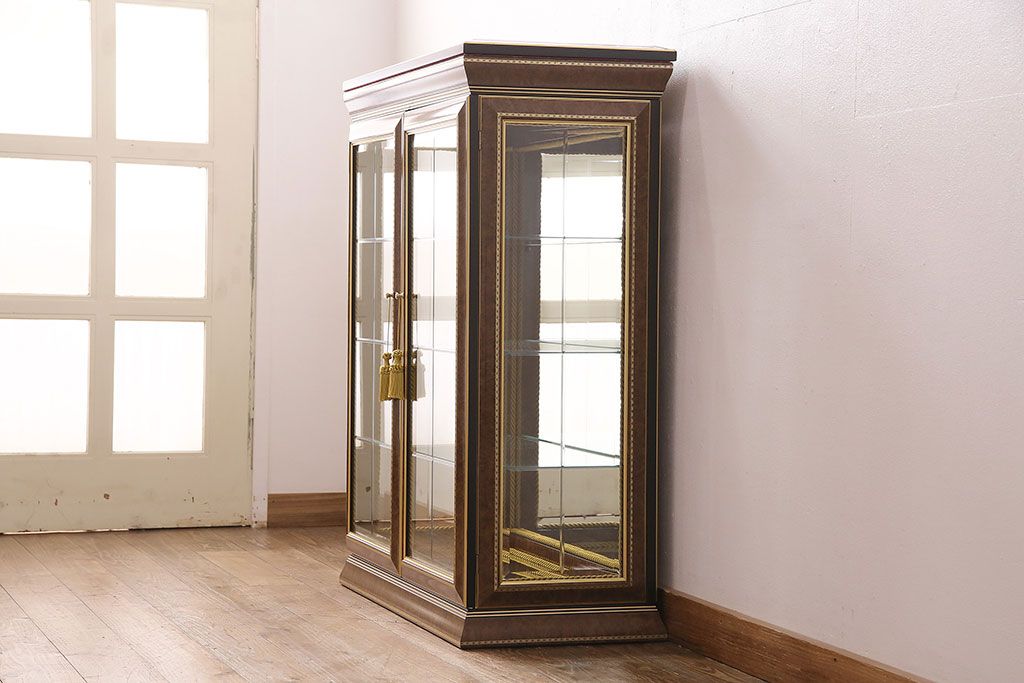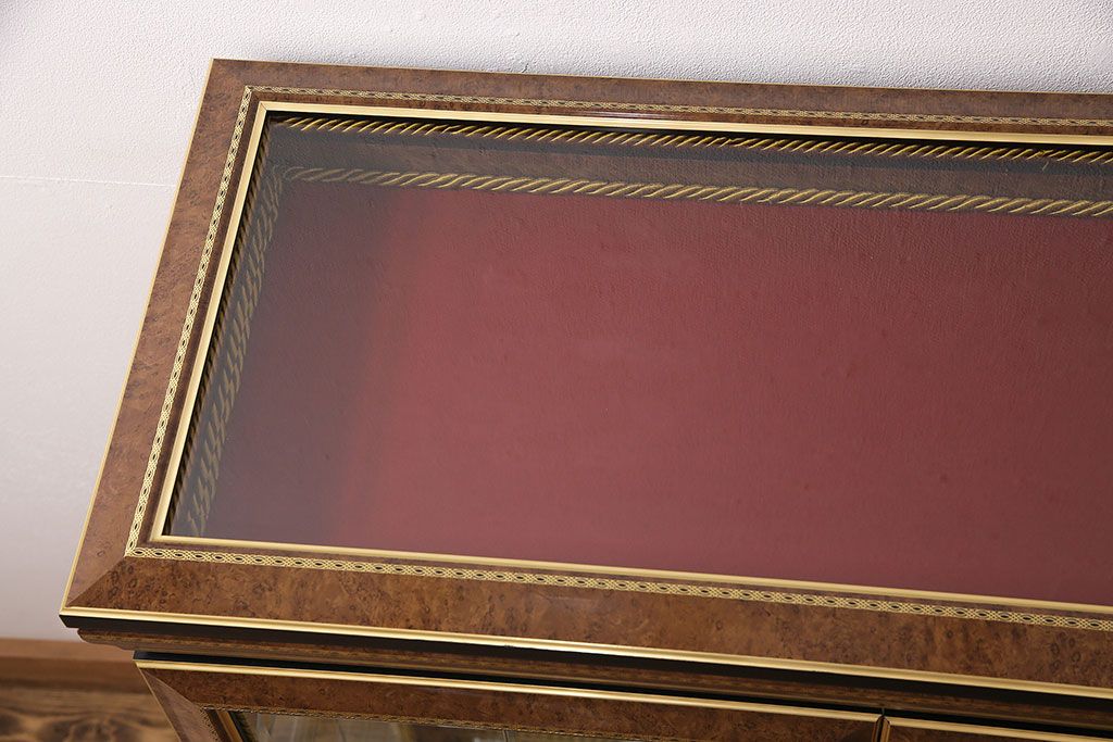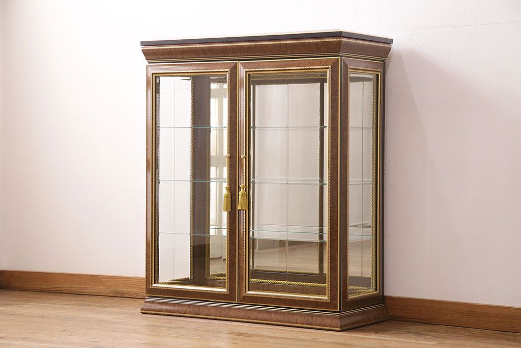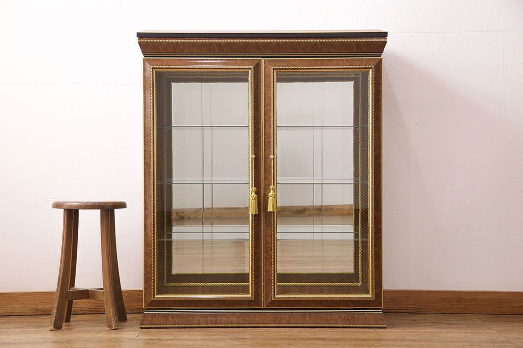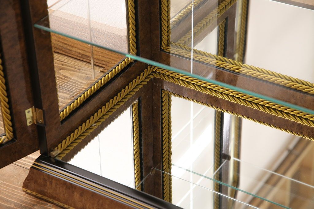 中古 美品 イタリア輸入家具 クラシカルな佇まいが魅力のキュリオケース(ガラスケース、キャビネット、飾り棚、コレクションケース)(定価約39万円)(R-049066)