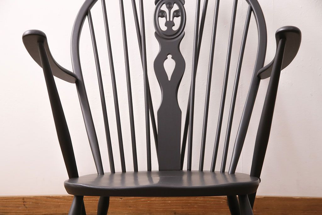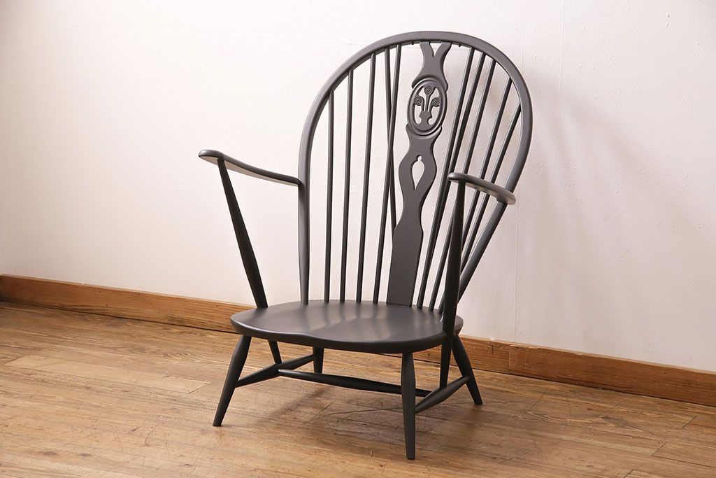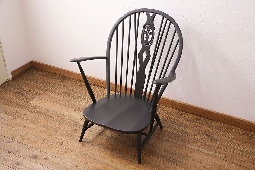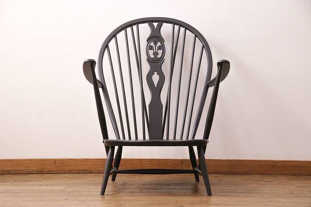 ヴィンテージ家具 ペイント ERCOL(アーコール) シックなカラーがお洒落な雰囲気を醸しだすラウンジチェア(椅子、アームチェア、ビンテージ)(R-049060)