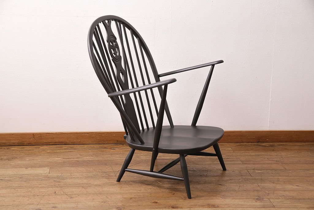 椅子・ベンチ> アームチェア > ヴィンテージ家具 ペイント ERCOL(アーコール) シックなカラーがお洒落な雰囲気を醸しだすラウンジチェア(椅子、アームチェア、ビンテージ)(R-049060)