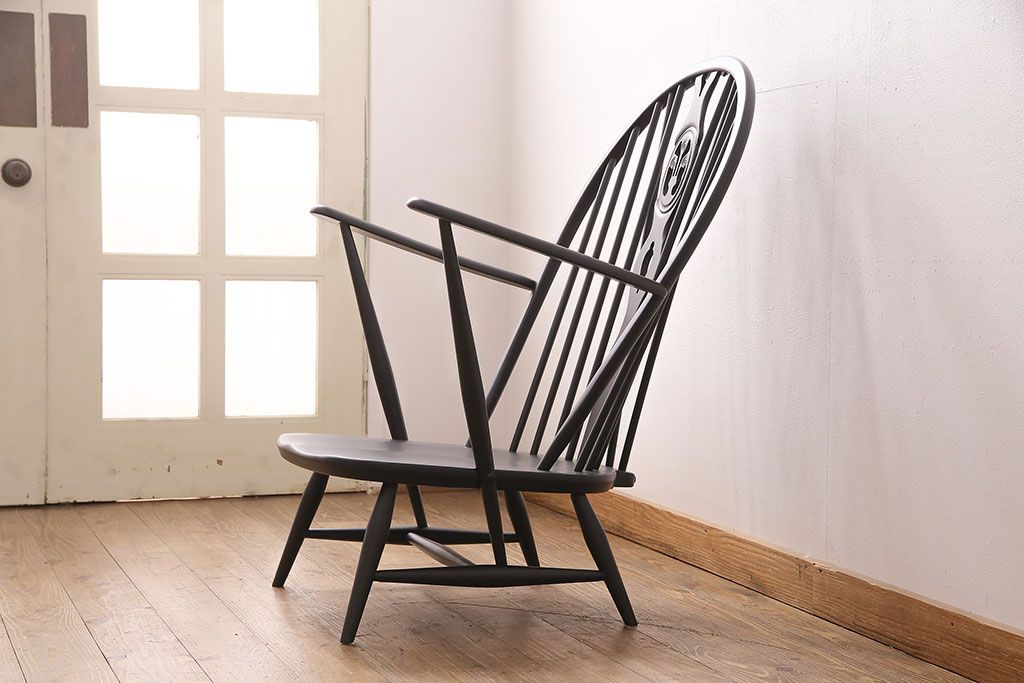 椅子・ベンチ> ラウンジチェア > ヴィンテージ家具 ペイント ERCOL(アーコール) シックなカラーがお洒落な雰囲気を醸しだすラウンジチェア(椅子、アームチェア、ビンテージ)(R-049060)