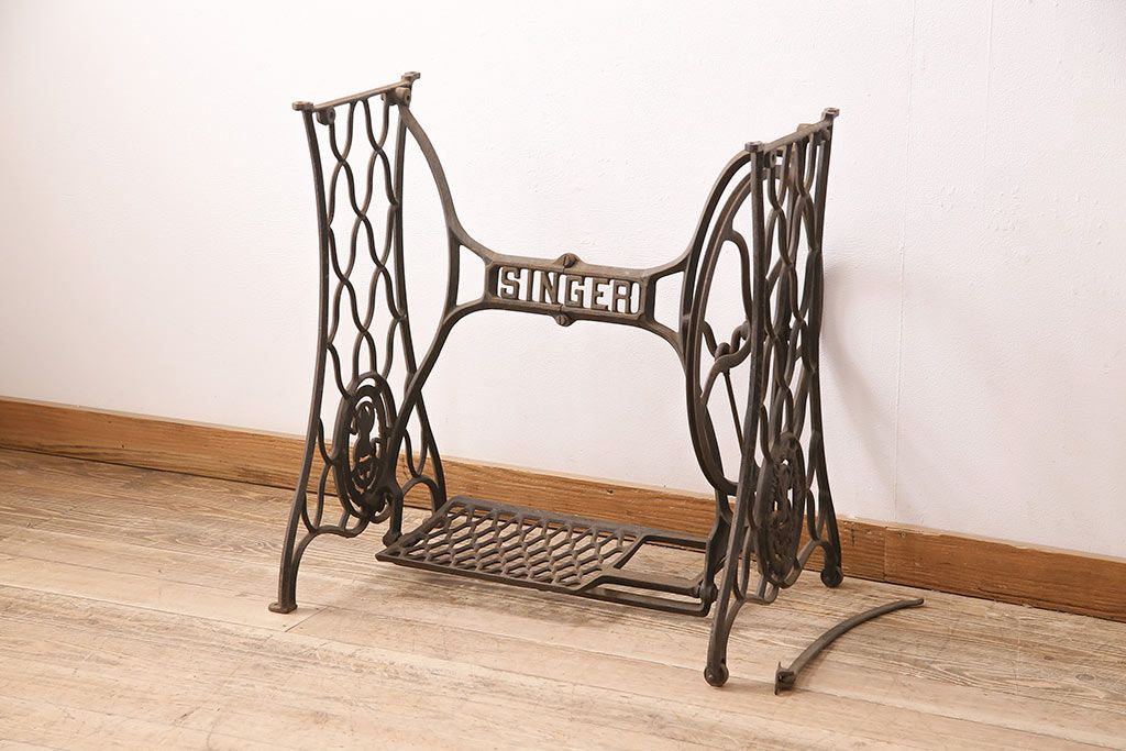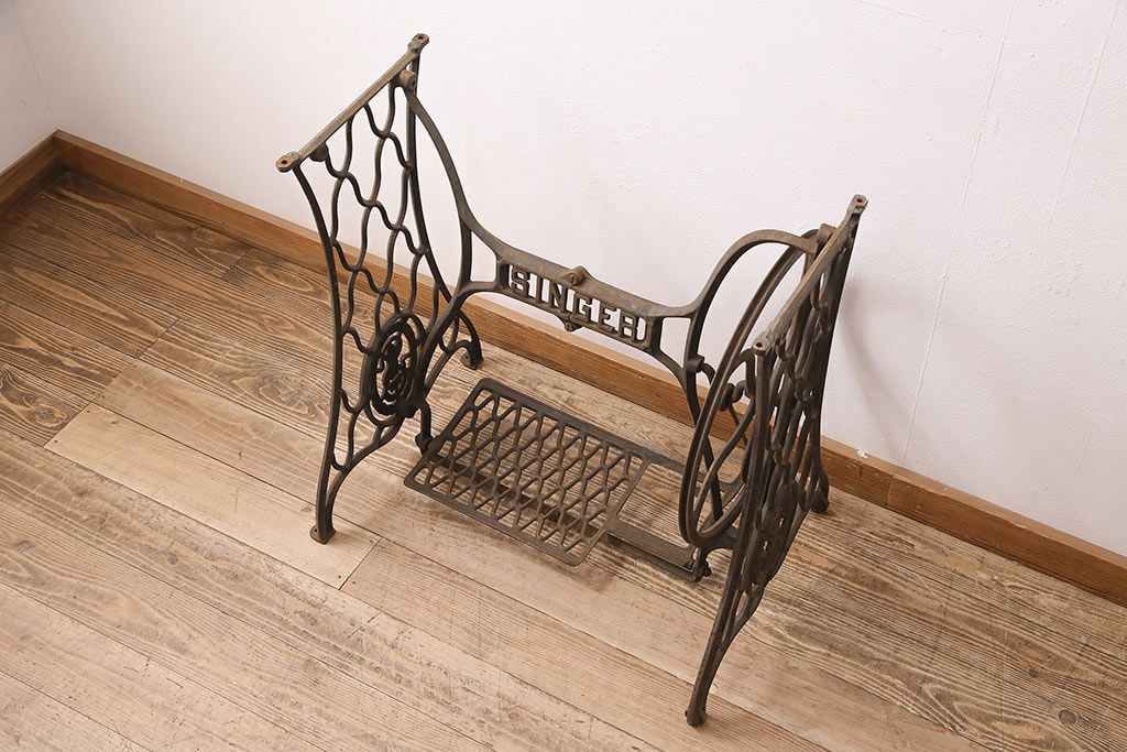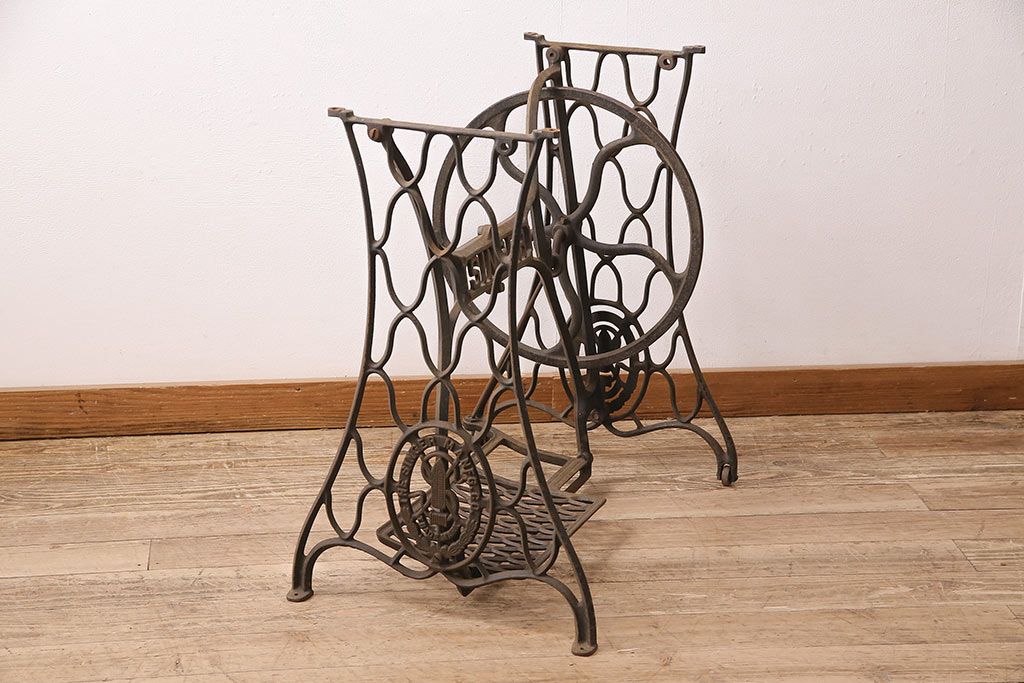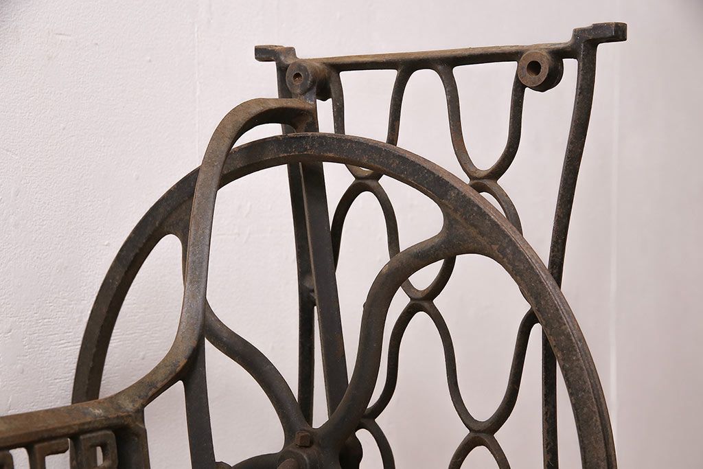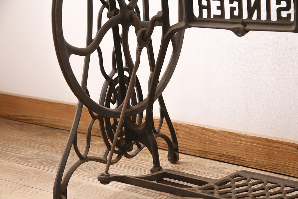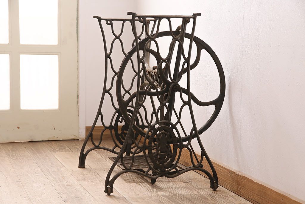 テーブル> 鉄脚テーブル > イギリスアンティーク SINGER(シンガー)社 天板を付けて仕上げる、レトロな佇まいがお洒落なミシンの鉄脚(シンガーミシン、拡張式テーブル、バタフライテーブル式、ミシンテーブル)(R-048743)