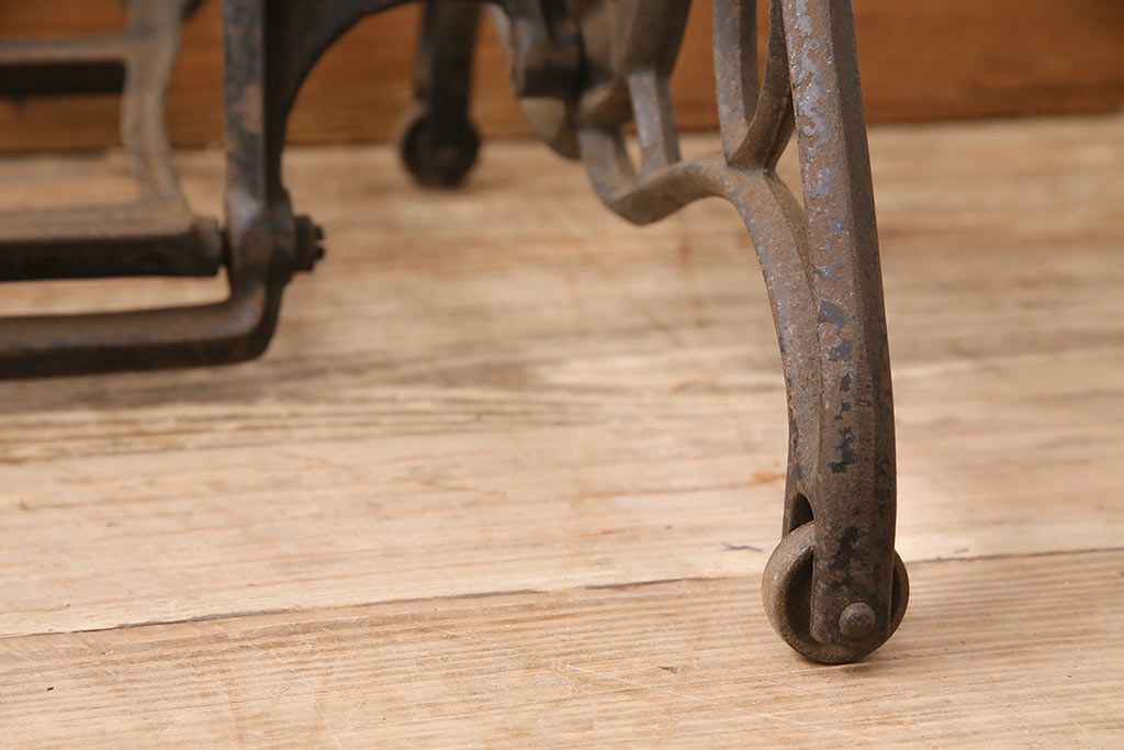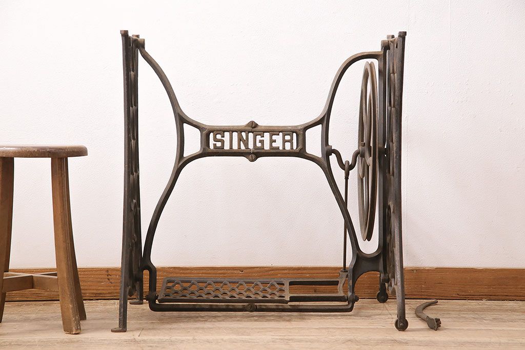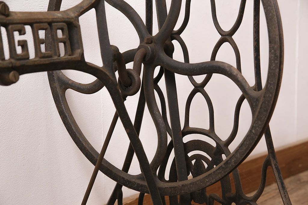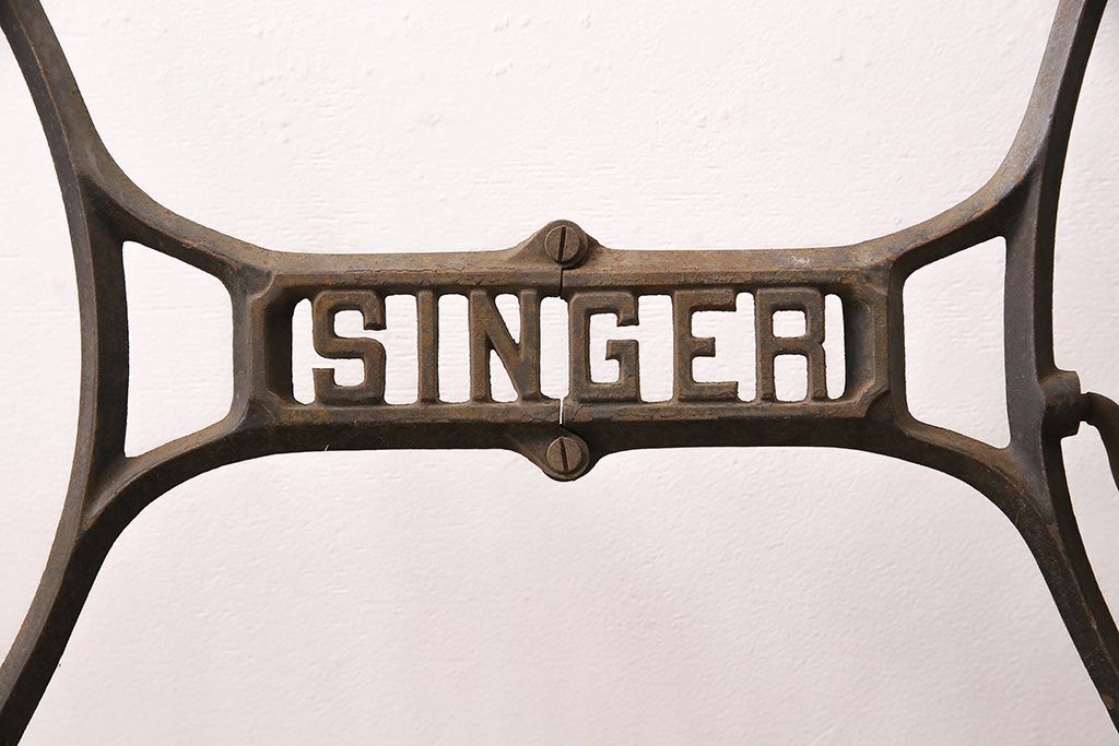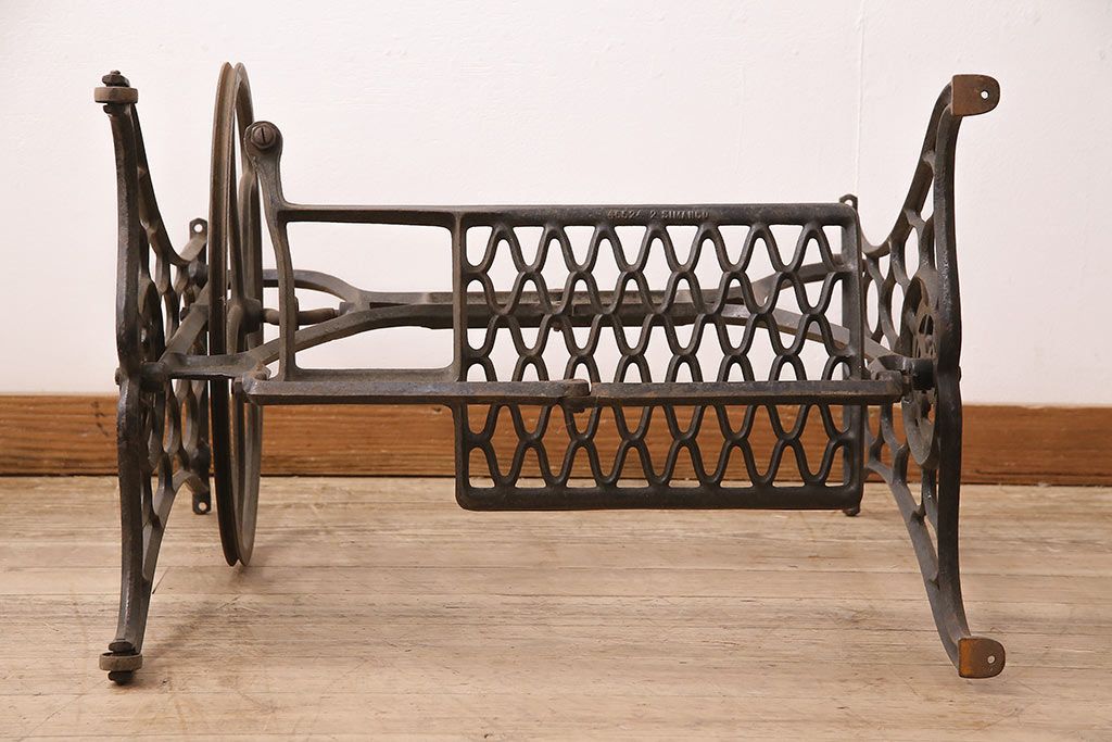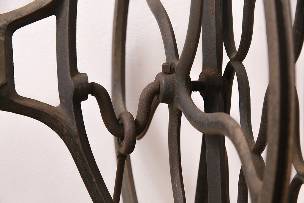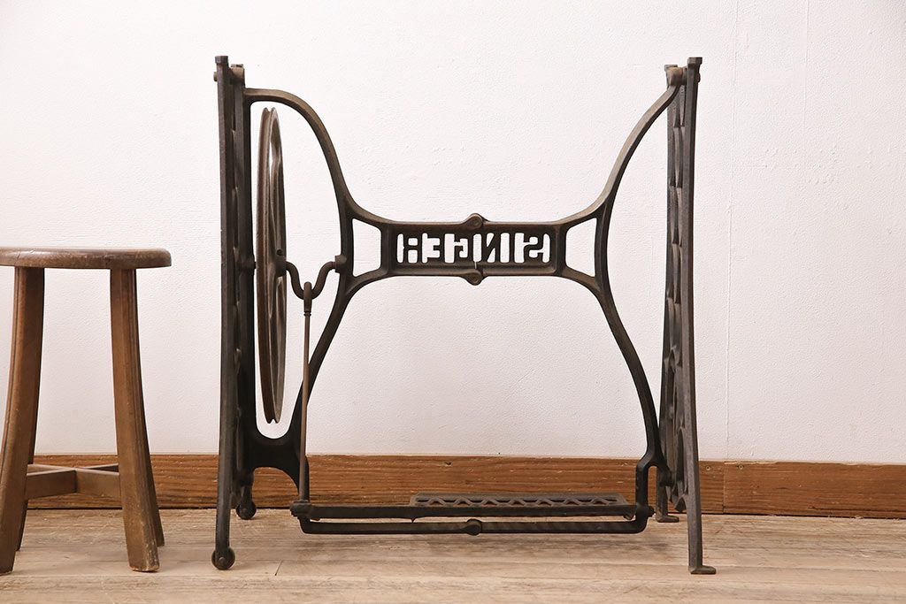 テーブル> 鉄脚テーブル > イギリスアンティーク SINGER(シンガー)社 天板を付けて仕上げる、レトロな佇まいがお洒落なミシンの鉄脚(シンガーミシン、拡張式テーブル、バタフライテーブル式、ミシンテーブル)(R-048743)