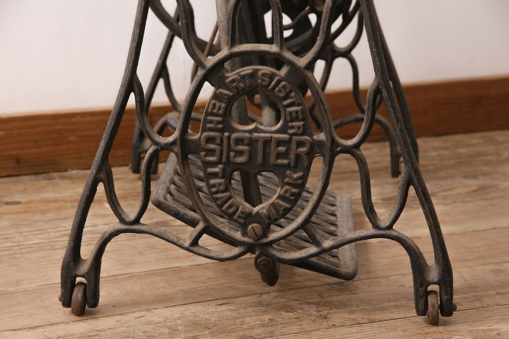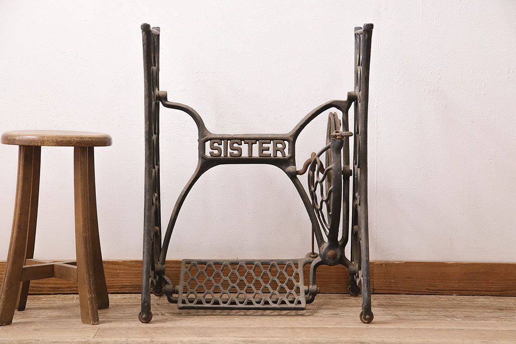 テーブル> ミシンテーブル > アンティーク BROTHER(ブラザー)社 SISTER(シスター) シャビーな佇まいがお洒落なミシンの鉄脚(ミシンテーブル、ミシン台)(R-048741)