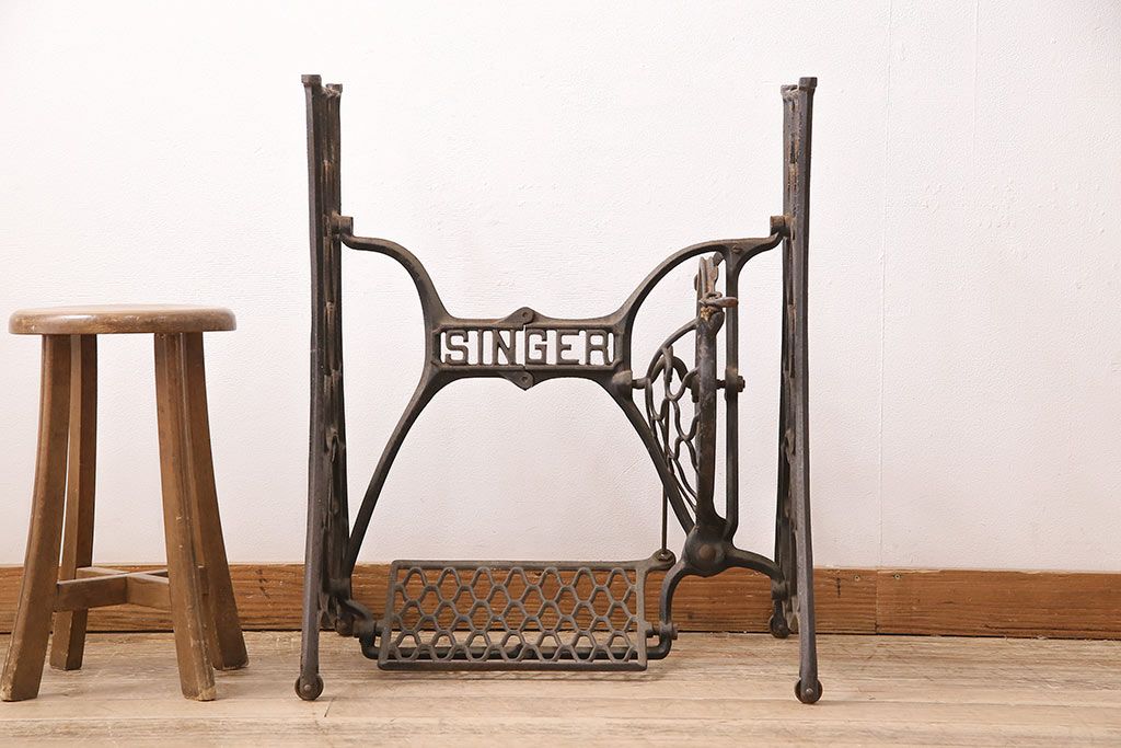 イギリスアンティーク SINGER(シンガー)社 お洒落なインテリアにおすすめのミシンの鉄脚(シンガーミシン、ミシンテーブル、ミシン台)(R-048742)