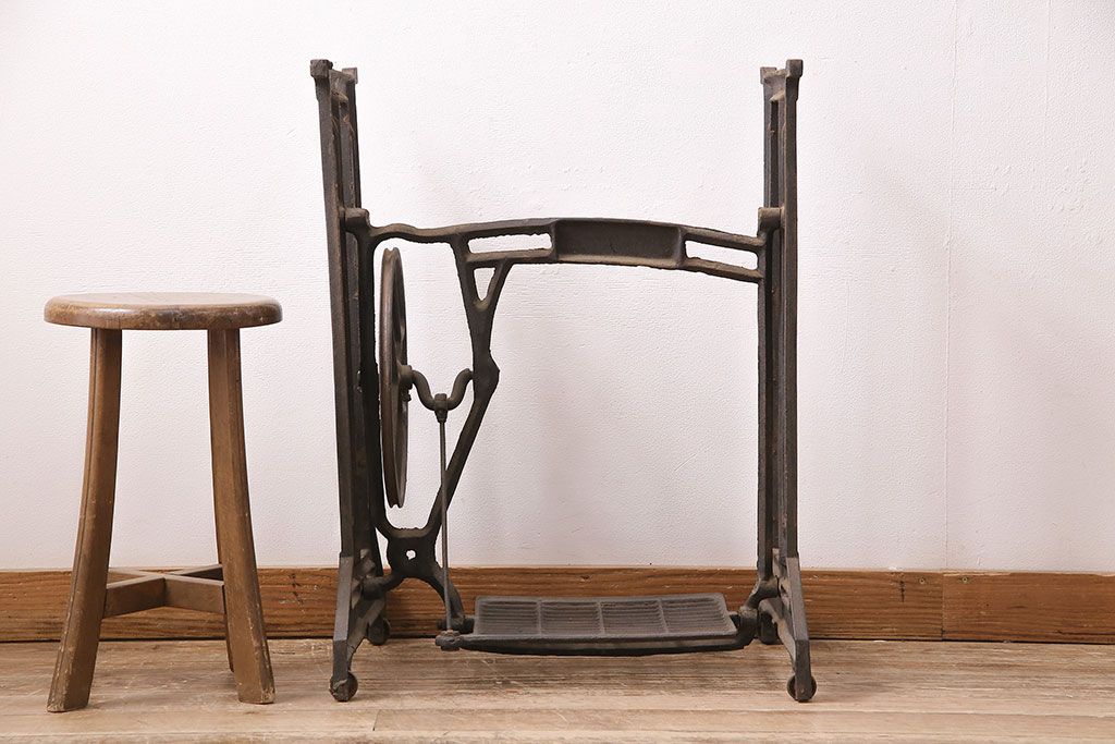 ラフジュ工房> テーブル> カフェテーブル・コーヒーテーブル > 和製アンティーク 天板を付けて仕上げ レトロな雰囲気とシンプルなデザインが魅力的なミシンの鉄脚(ミシンテーブル、ミシン台)(R-048467)