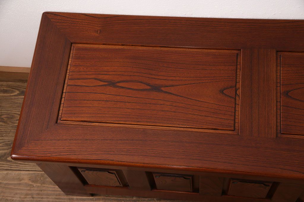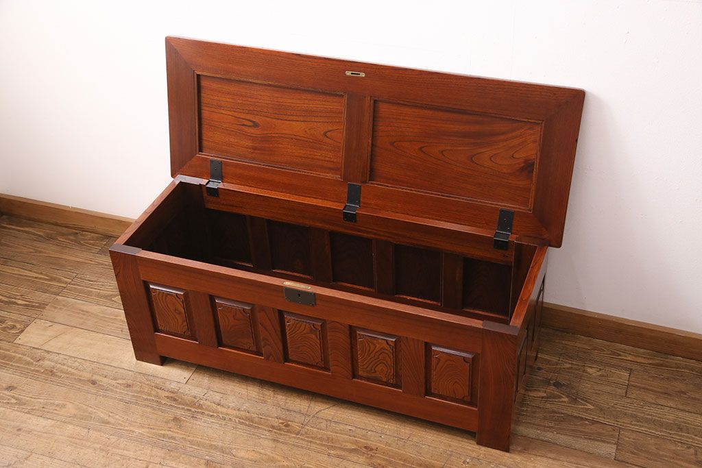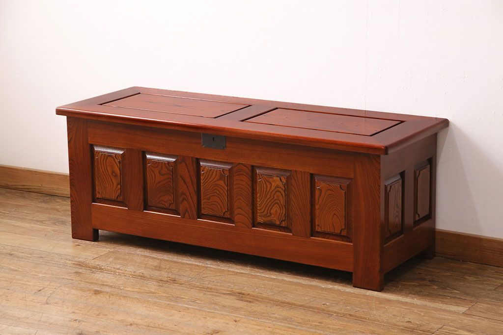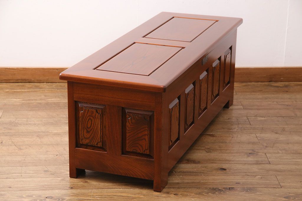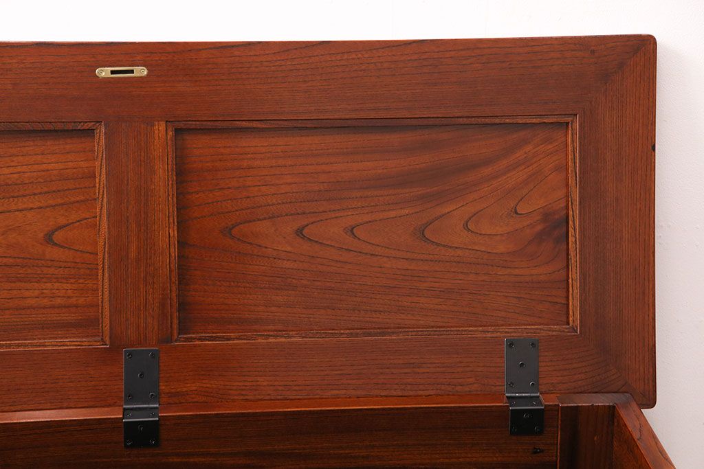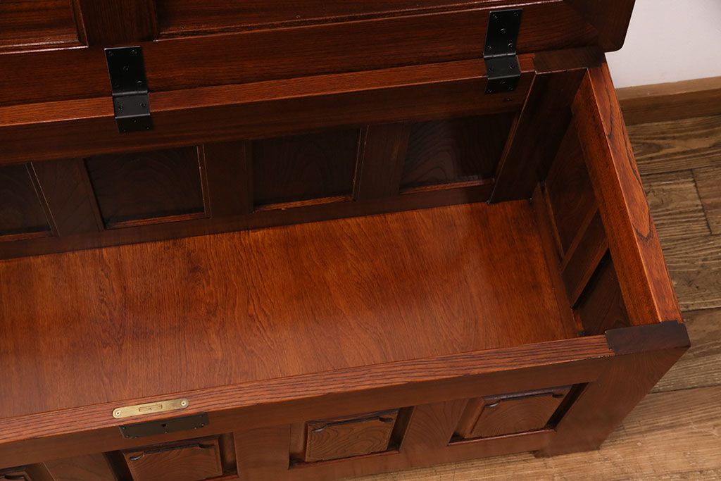 中古 極美品 松本民芸家具の特注品!漆塗りが美しい総ケヤキ材製のベンチ収納箱(収納ボックス)(定価約62万円)(R-049124)