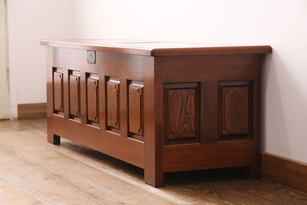 民芸家具 > 中古 極美品 松本民芸家具の特注品!漆塗りが美しい総ケヤキ材製のベンチ収納箱(収納ボックス)(定価約62万円)(R-049124)