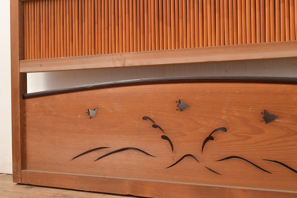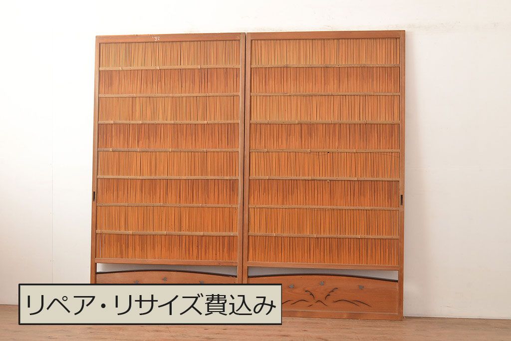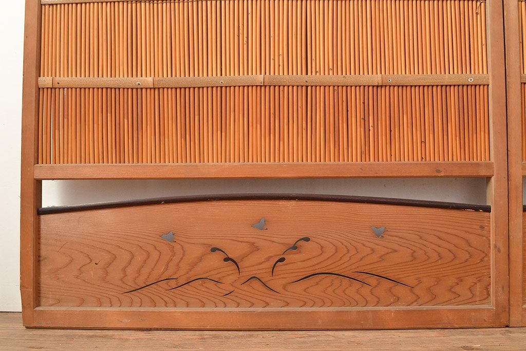 和製アンティーク 波千鳥の透かし彫りが愛らしい御簾戸2枚セット(建具、簾戸、簀戸、葭戸、夏障子、すど、葦戸)(R-048319)