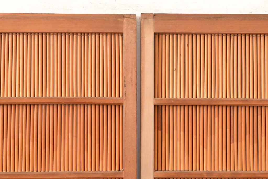 ラフジュ工房> ドア・建具> 引き戸 > 和製アンティーク 波千鳥の透かし彫りが愛らしい御簾戸2枚セット(建具、簾戸、簀戸、葭戸、夏障子、すど、葦戸)(R-048319)