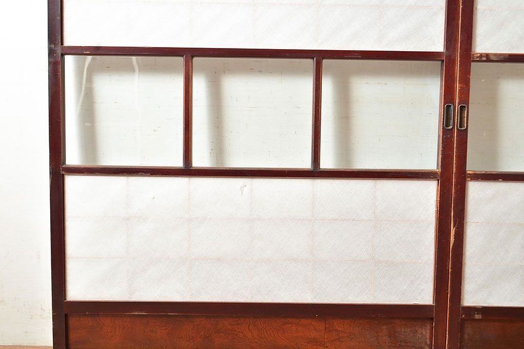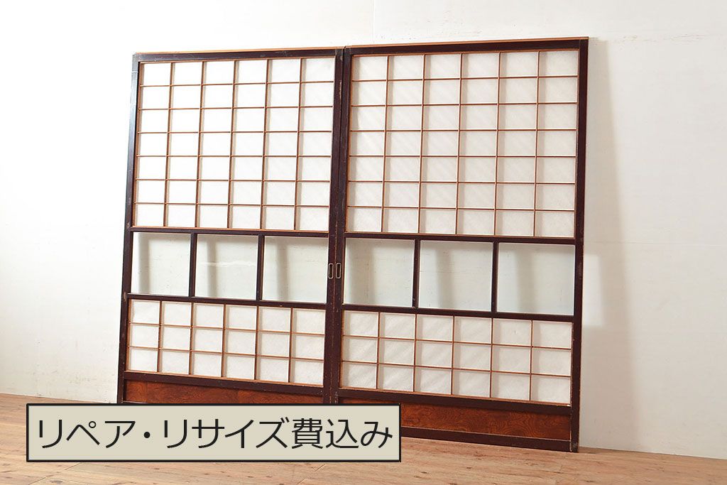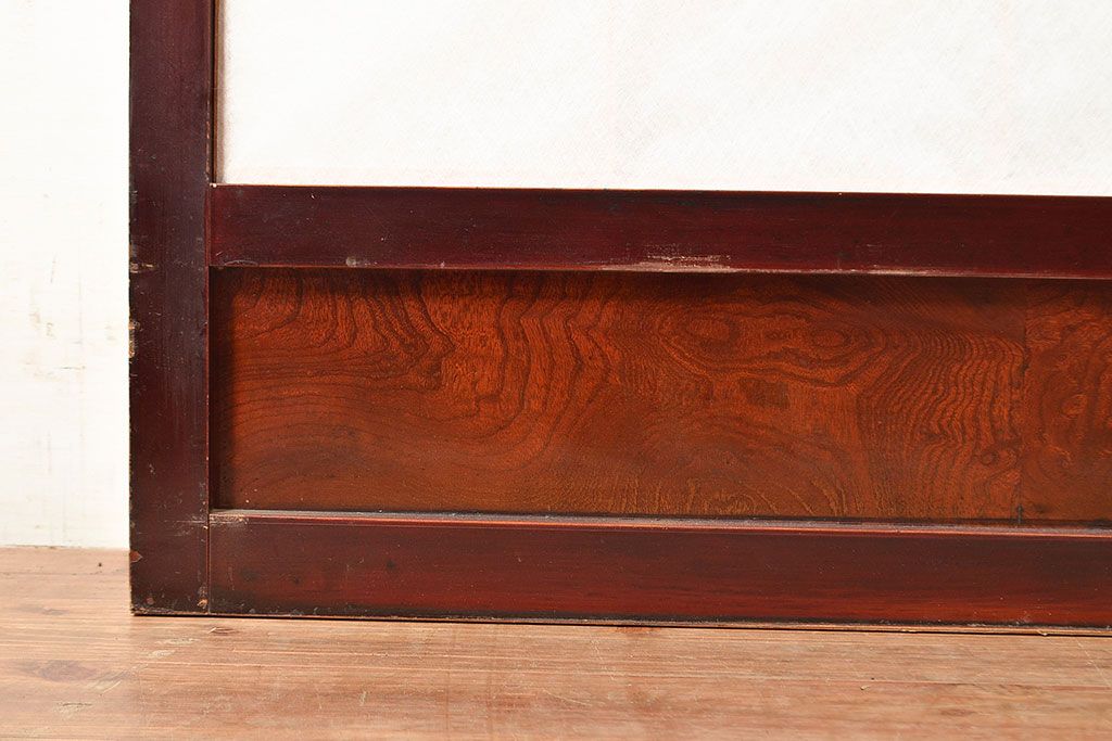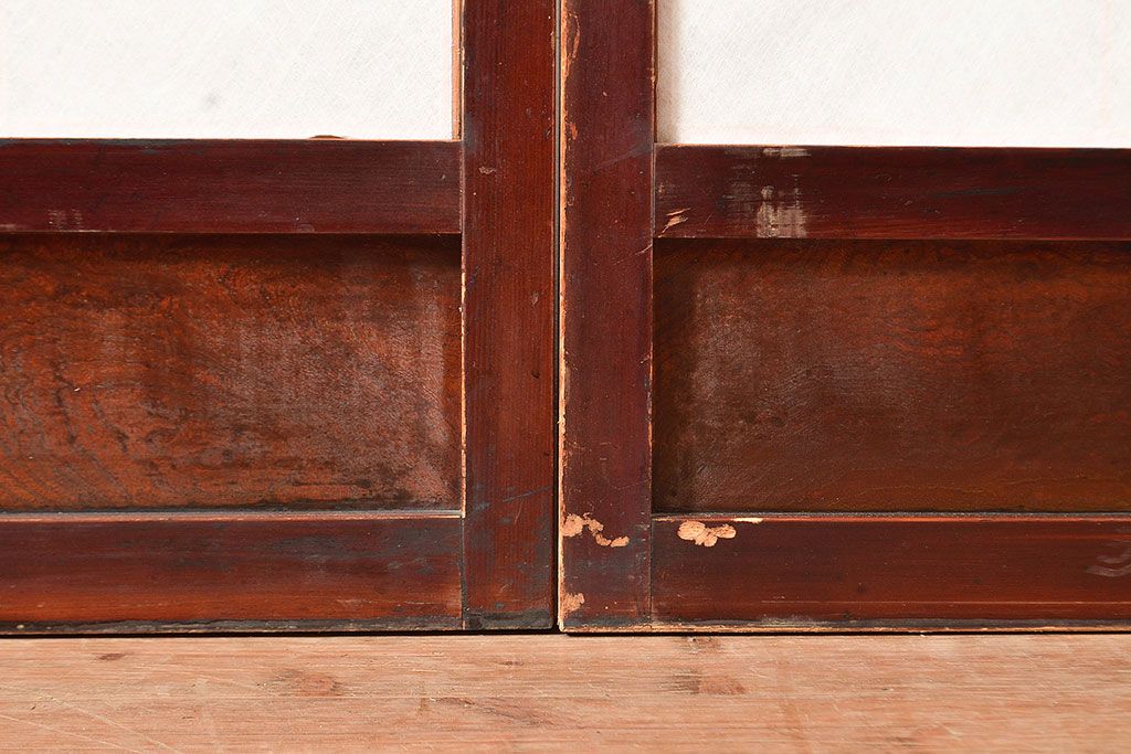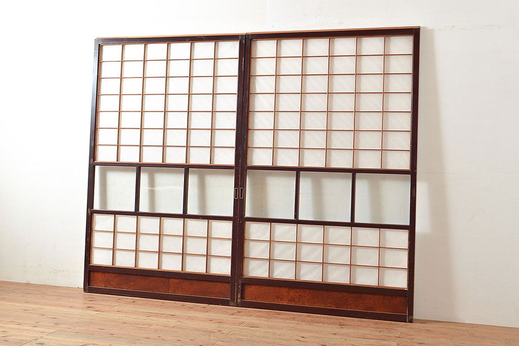 アンティーク建具 腰板ケヤキ材 枠・腰板漆塗り 和の情緒溢れる障子戸2枚セット(引き戸、建具)(R-048356)