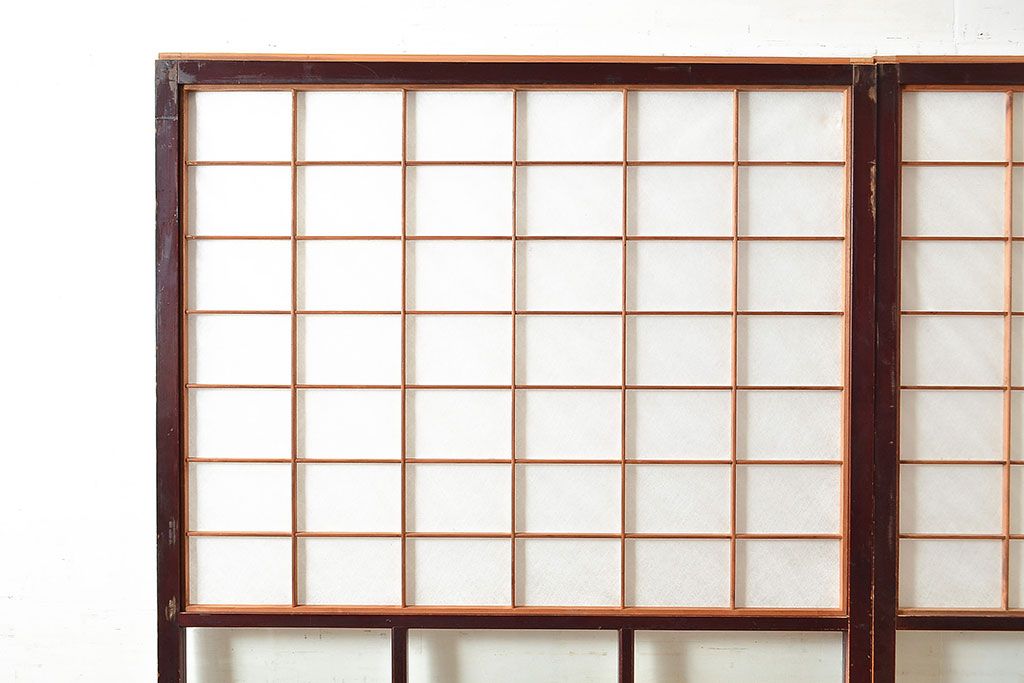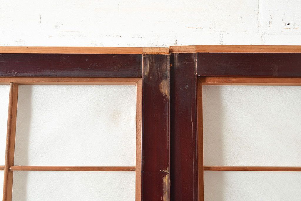 ラフジュ工房> ドア・建具> 障子戸 > アンティーク建具 腰板ケヤキ材 枠・腰板漆塗り 和の情緒溢れる障子戸2枚セット(引き戸、建具)(R-048356)