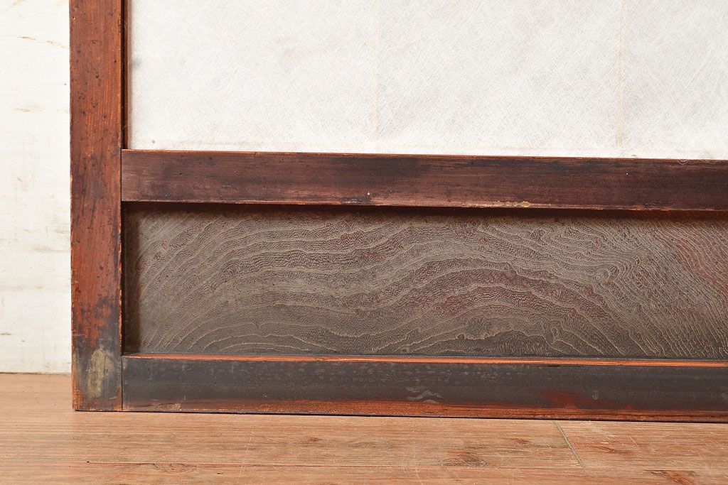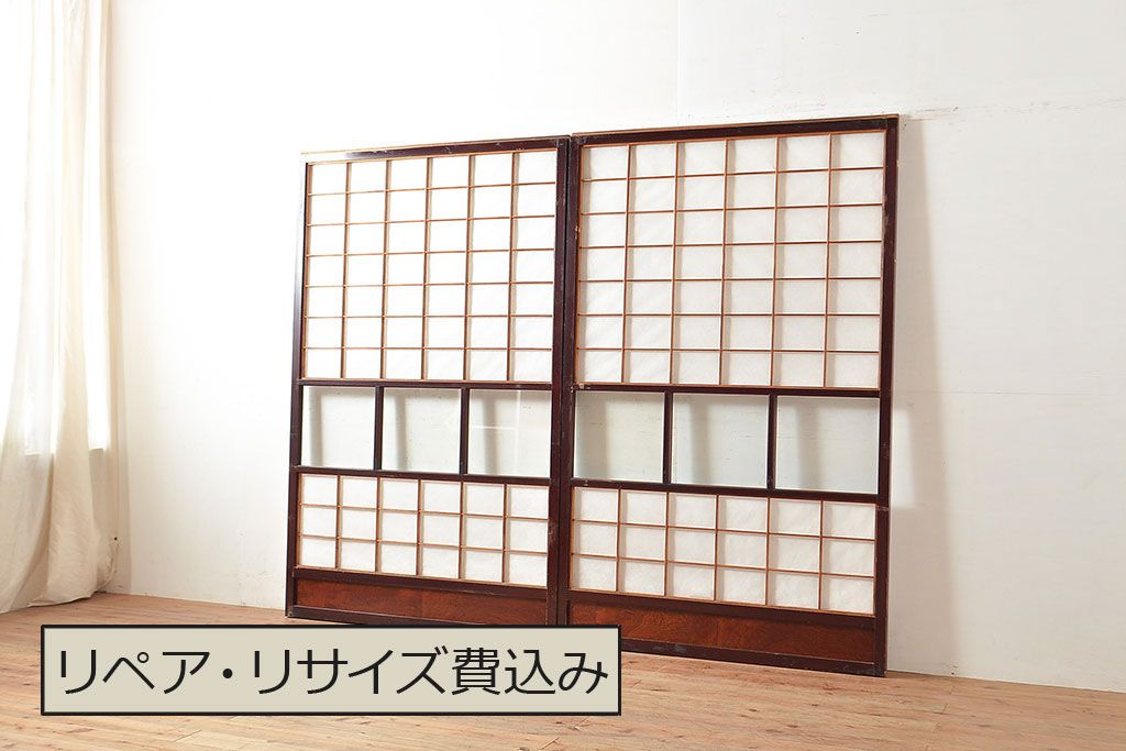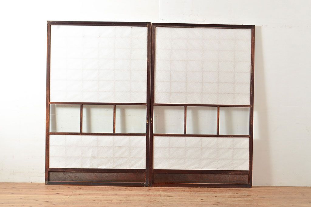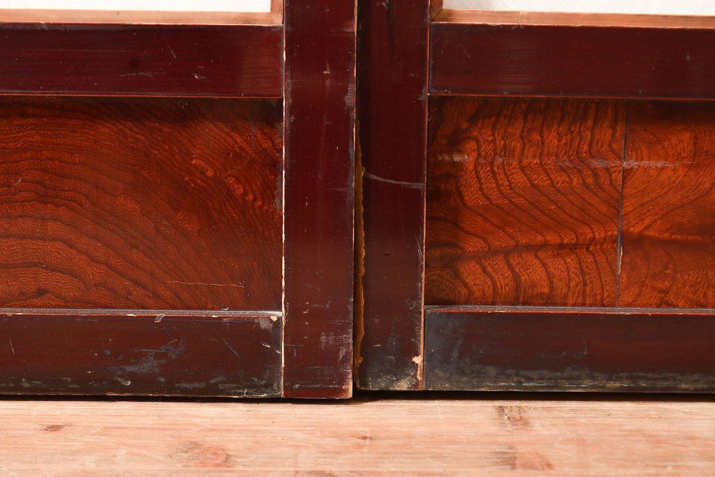 アンティーク建具 腰板ケヤキ材 枠漆塗り 落ち着きのある和空間におすすめな障子戸2枚セット(引き戸、建具)(R-048357)