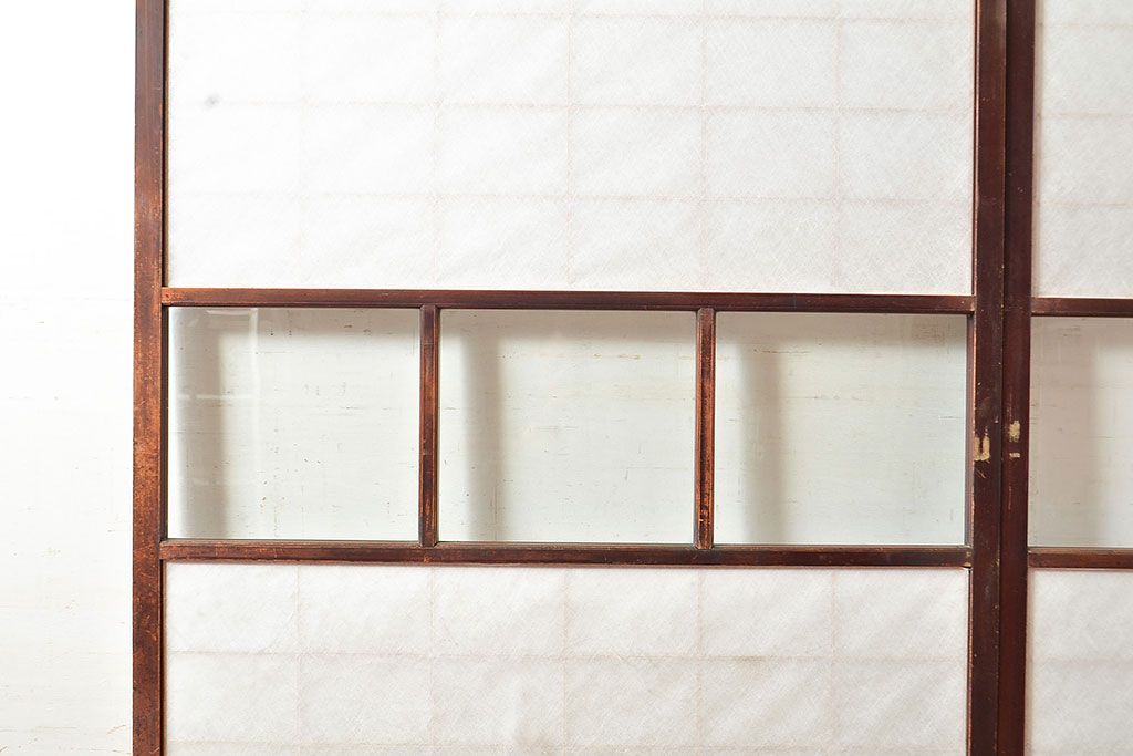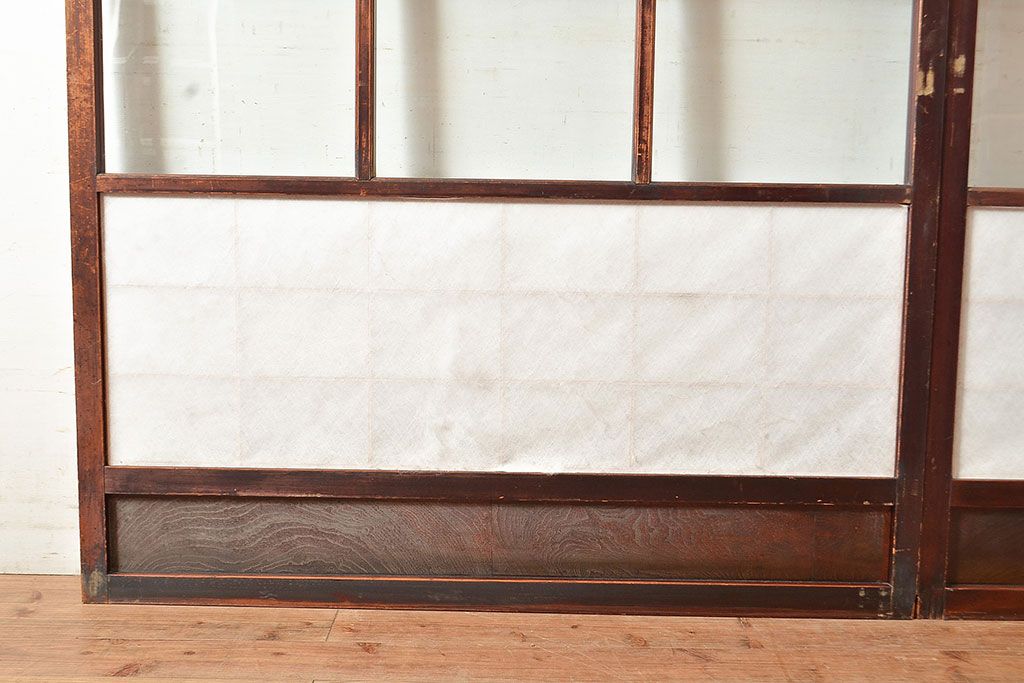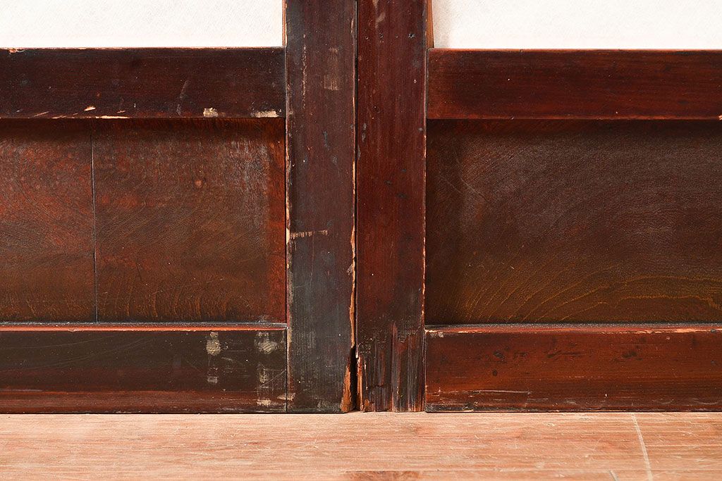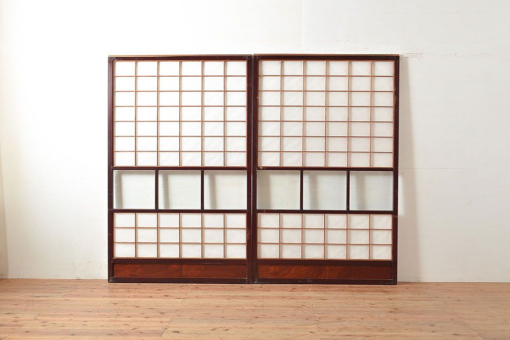 ラフジュ工房> ドア・建具> 格子戸 > アンティーク建具 腰板ケヤキ材 枠漆塗り 落ち着きのある和空間におすすめな障子戸2枚セット(引き戸、建具)(R-048357)