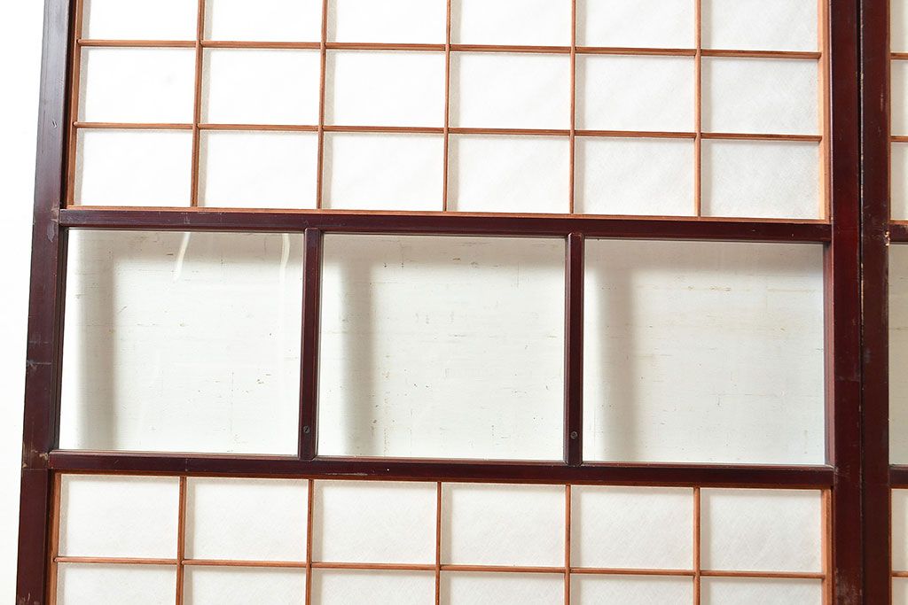 ラフジュ工房> ドア・建具> 障子戸 > アンティーク建具 腰板ケヤキ材 枠漆塗り 落ち着きのある和空間におすすめな障子戸2枚セット(引き戸、建具)(R-048357)
