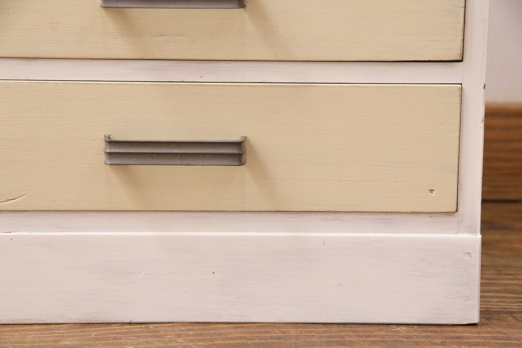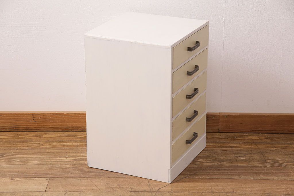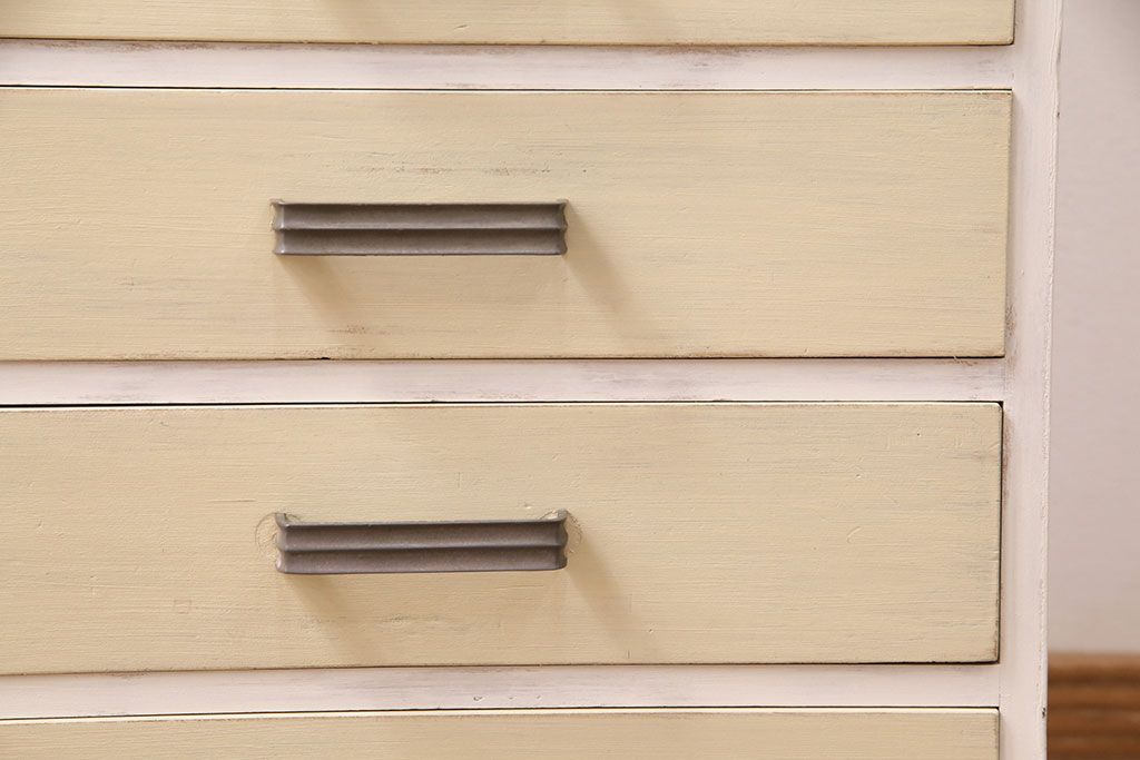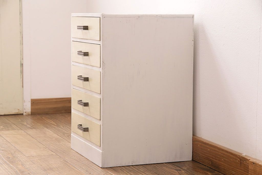 和製アンティーク ペイントカラーが優しい印象の小引き出し(小物収納、サイドチェスト)(R-049086)です。
