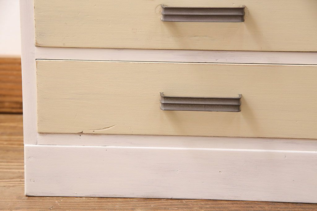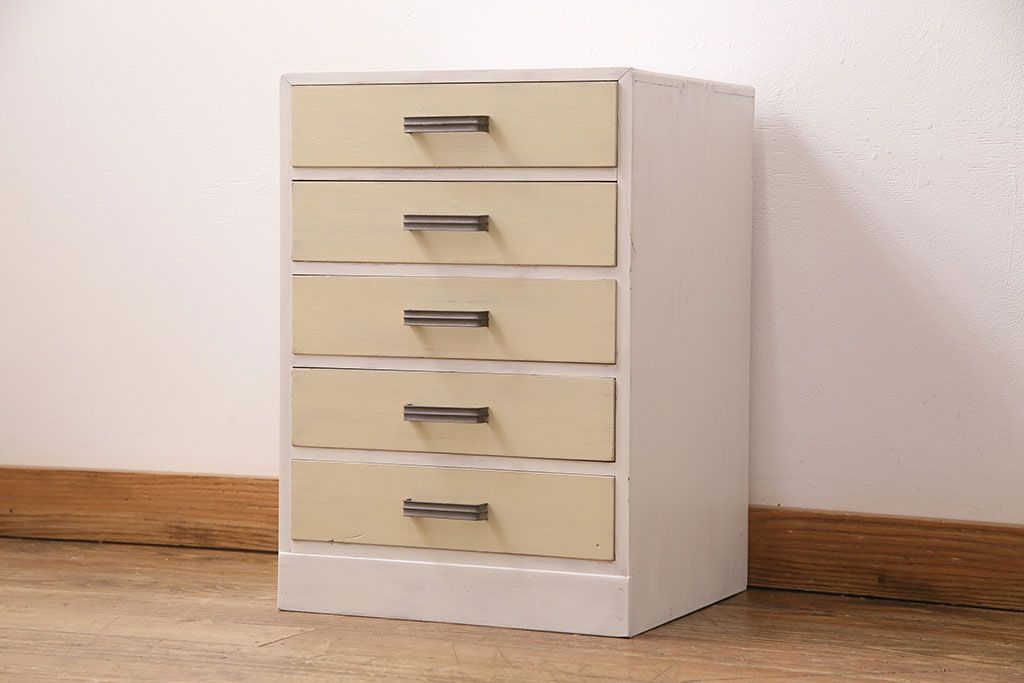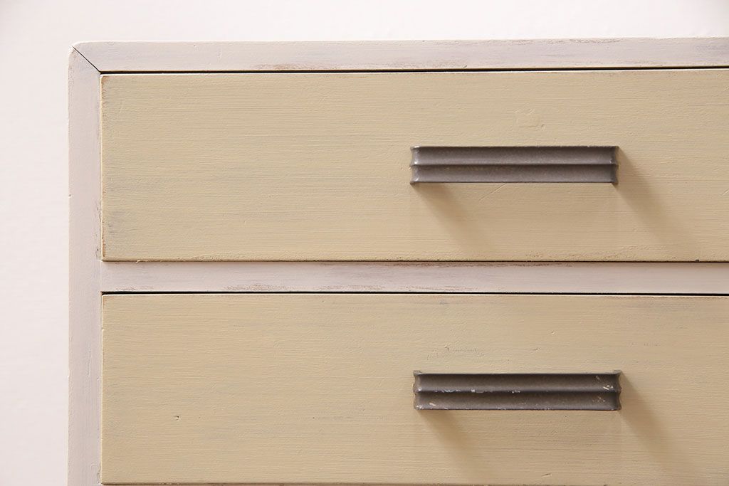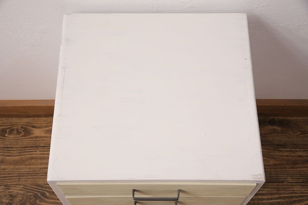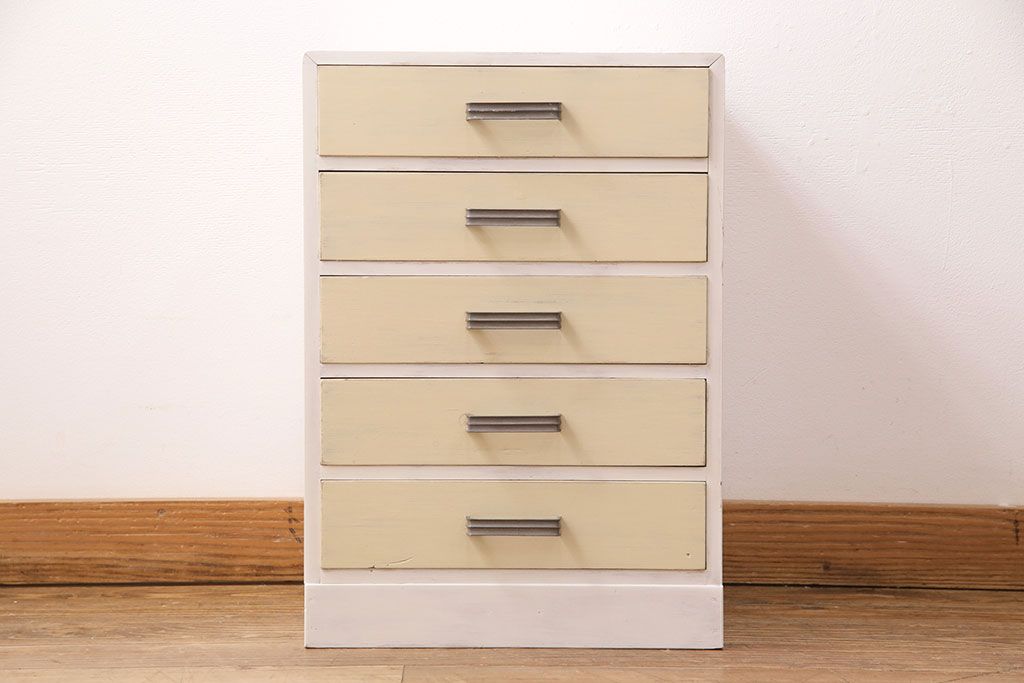 和製アンティーク ペイントカラーが優しい印象の小引き出し(小物収納、サイドチェスト)(R-049086)です。