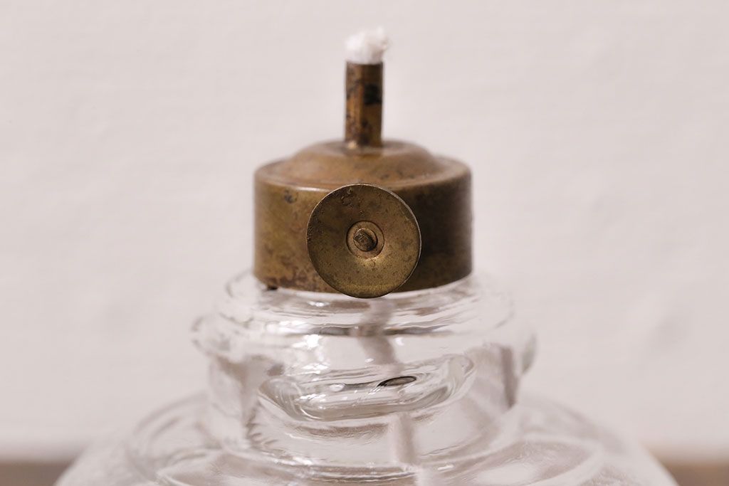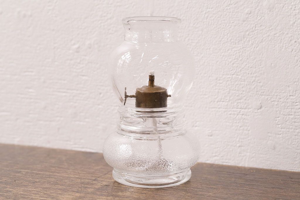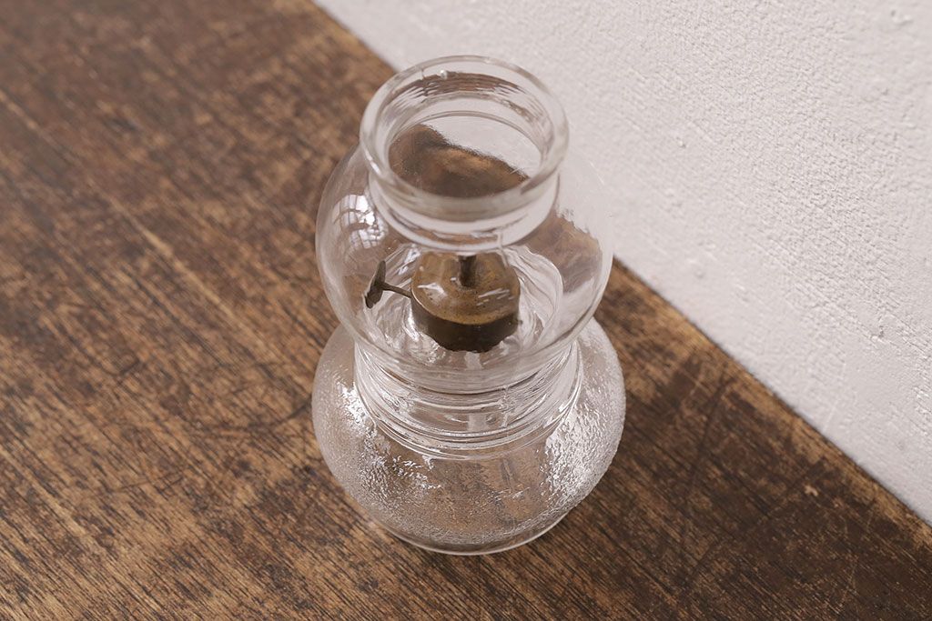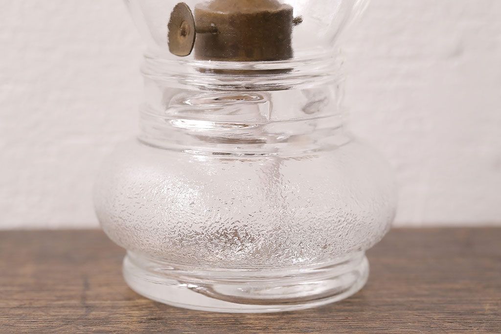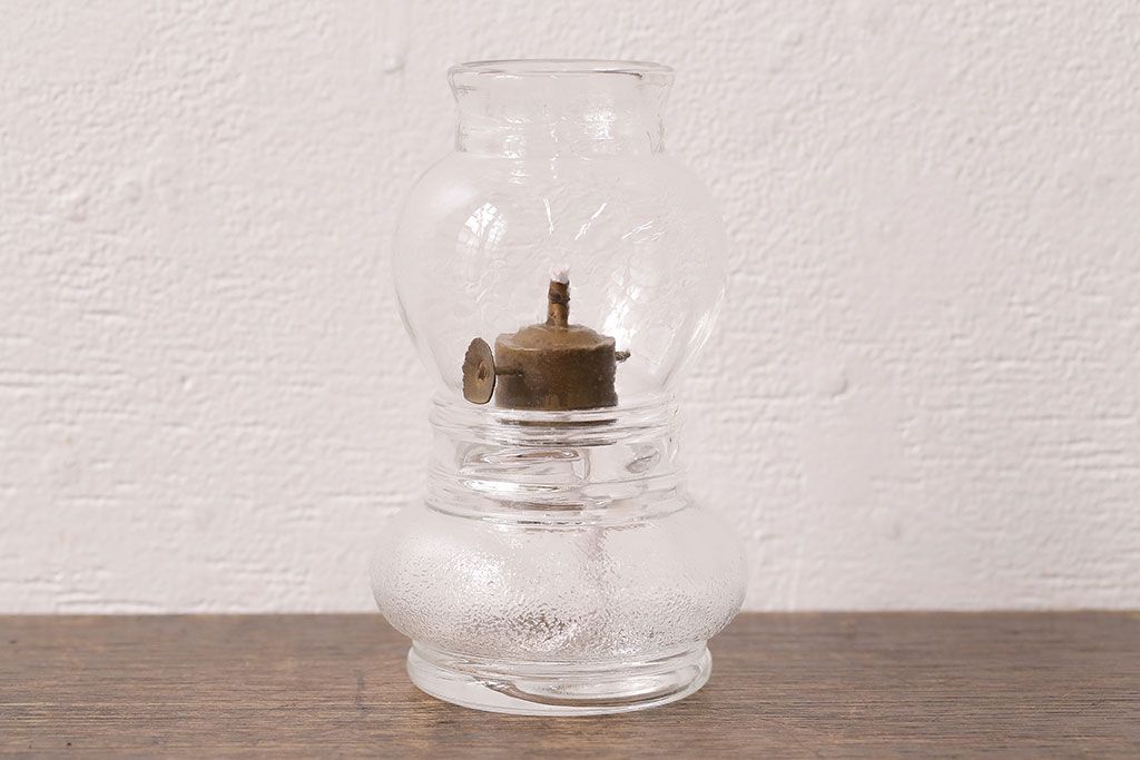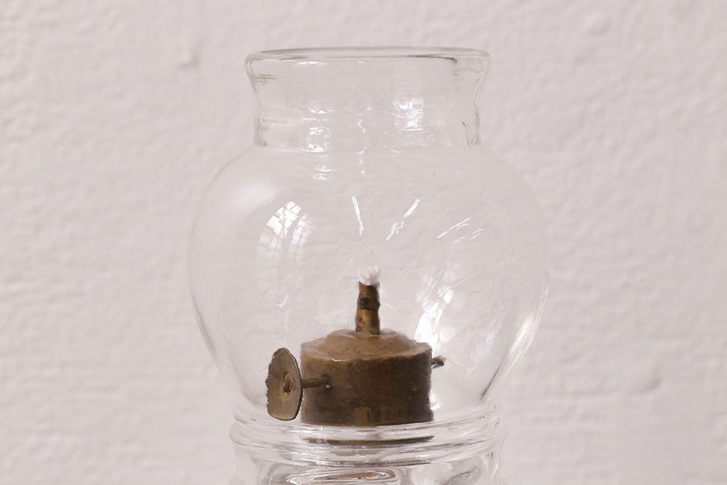 昭和レトロ ダイヤガラスがお洒落な古いガラスの豆ランプ(オイルランプ、火屋、油壷)(R-049053)