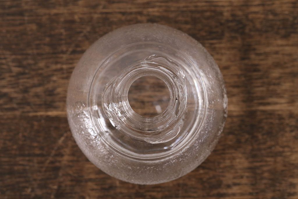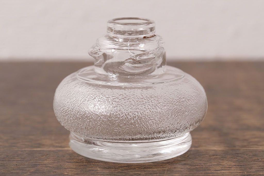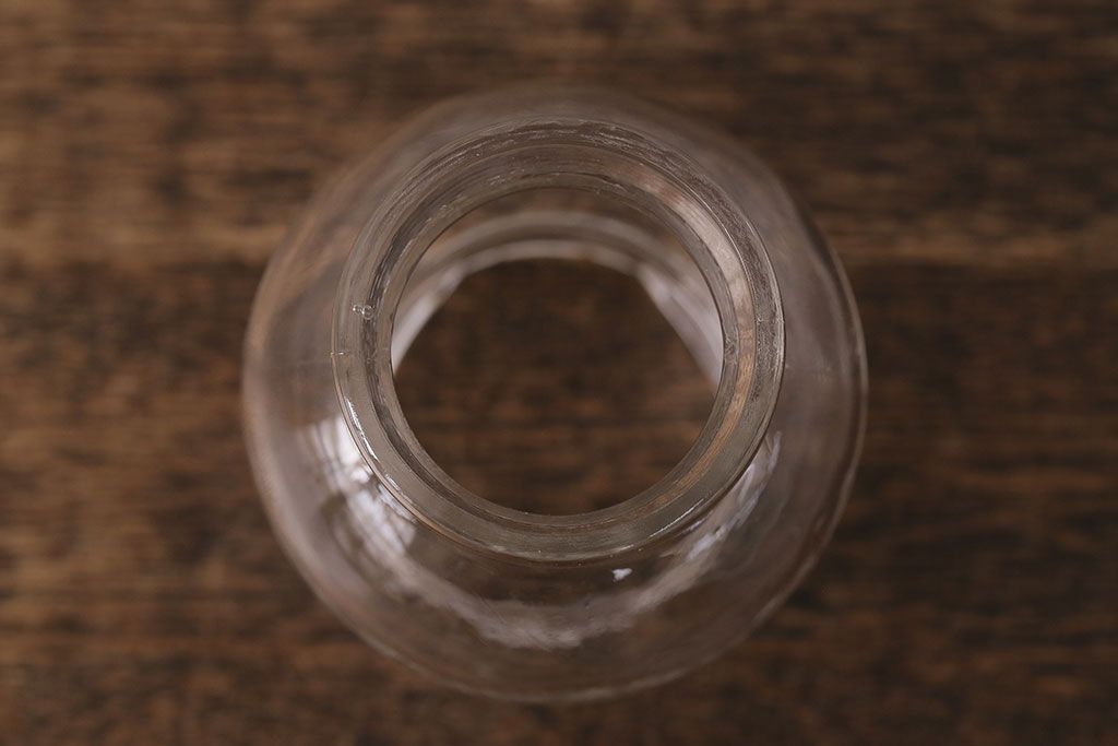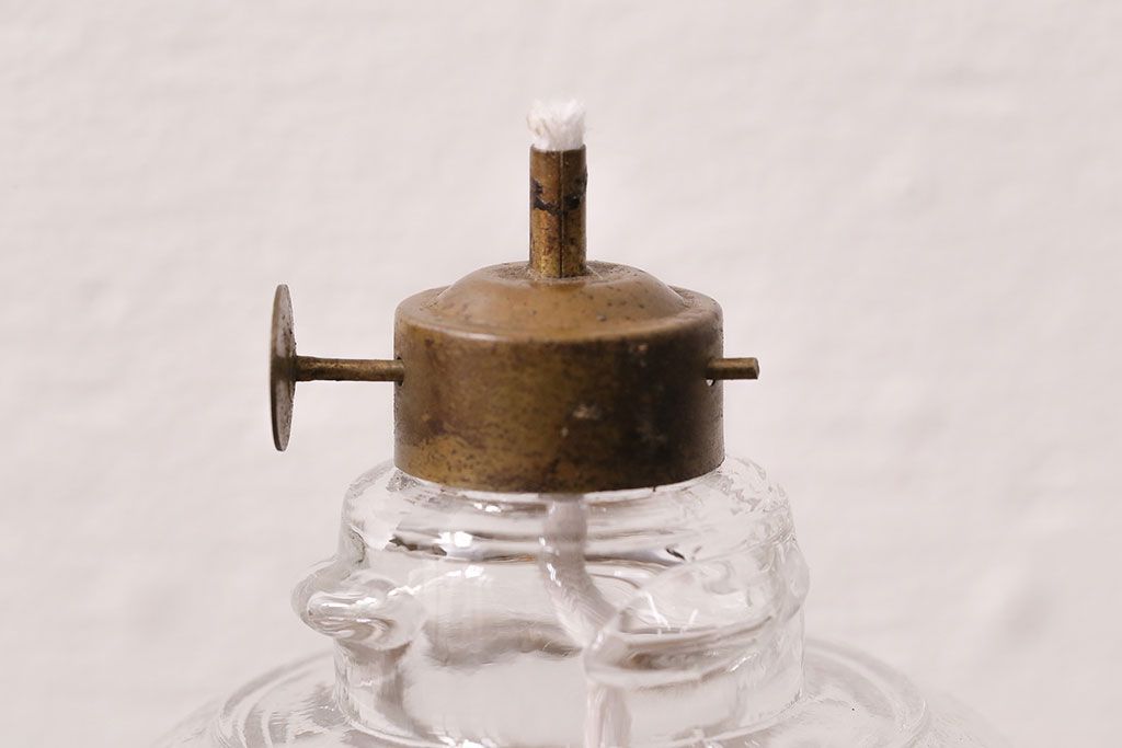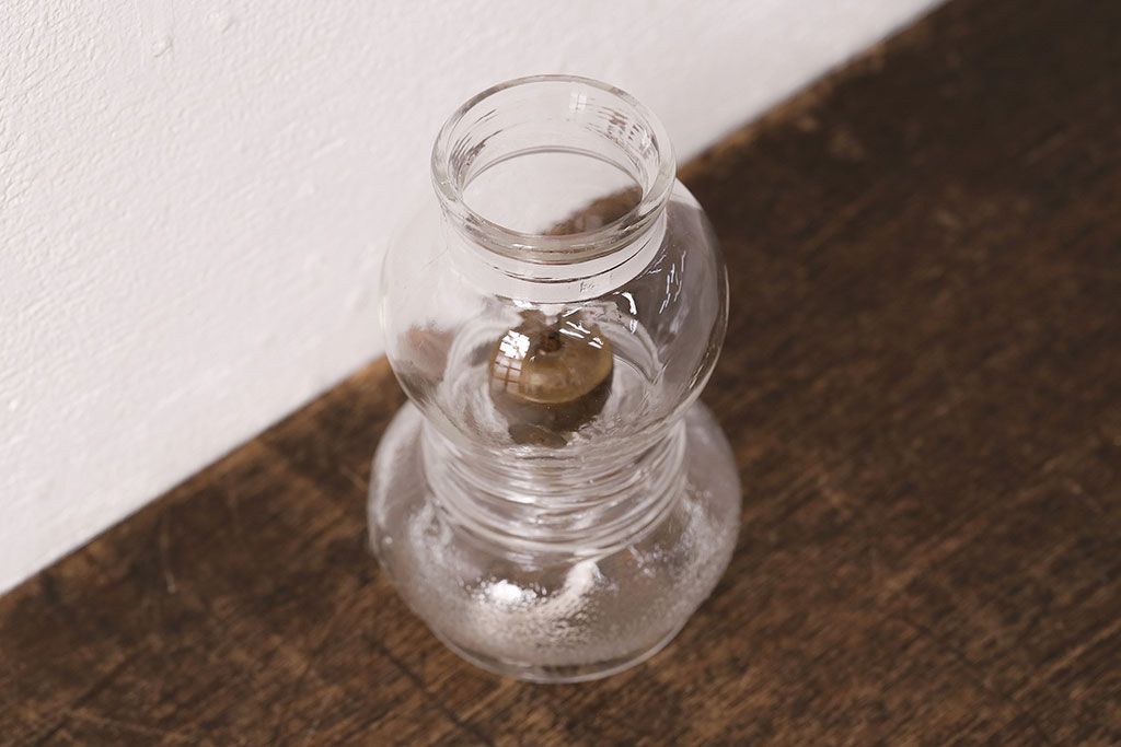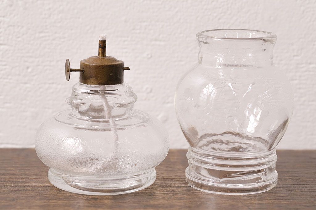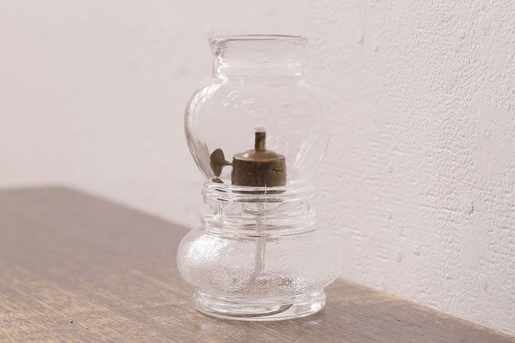 昭和レトロ ダイヤガラスがお洒落な古いガラスの豆ランプ(オイルランプ、火屋、油壷)(R-049053)
