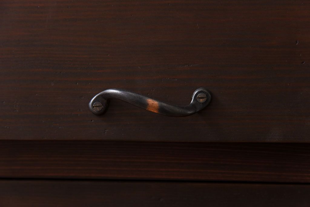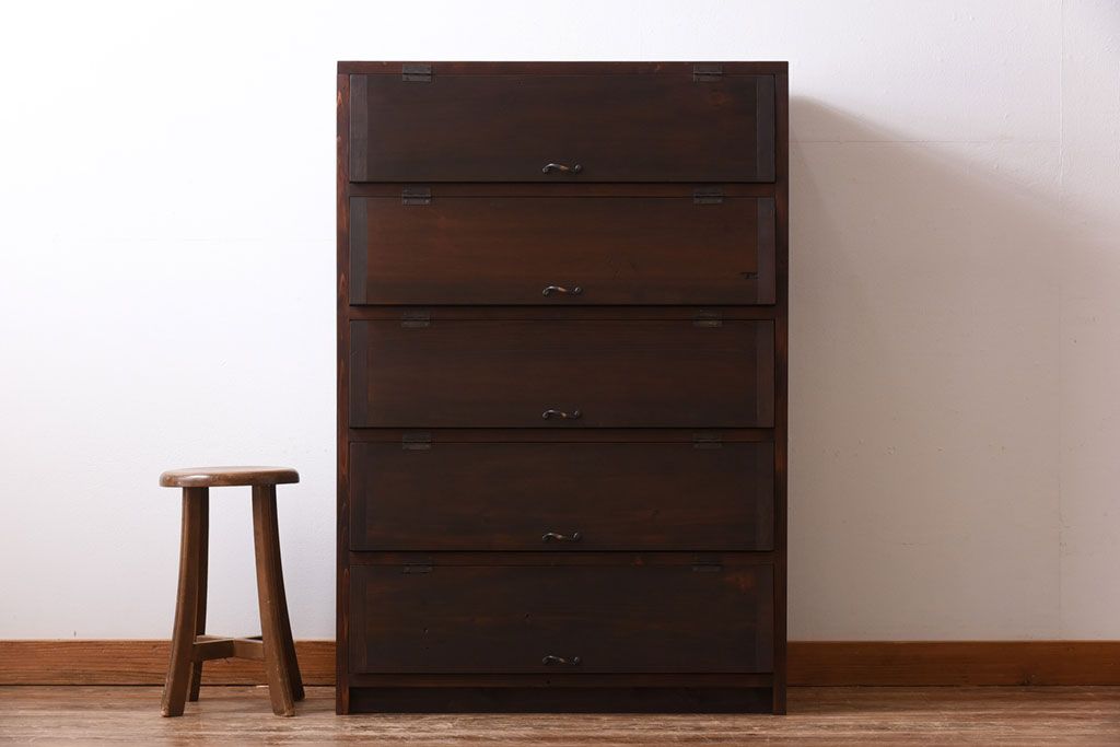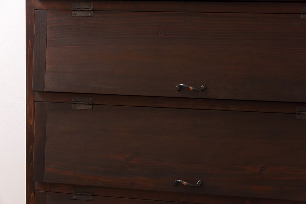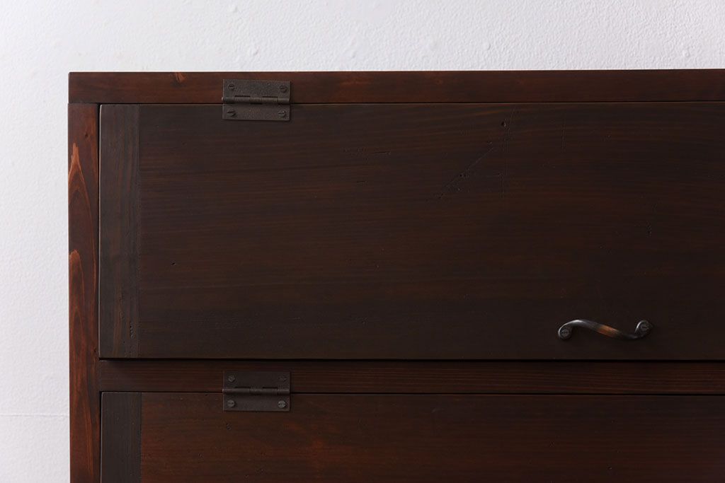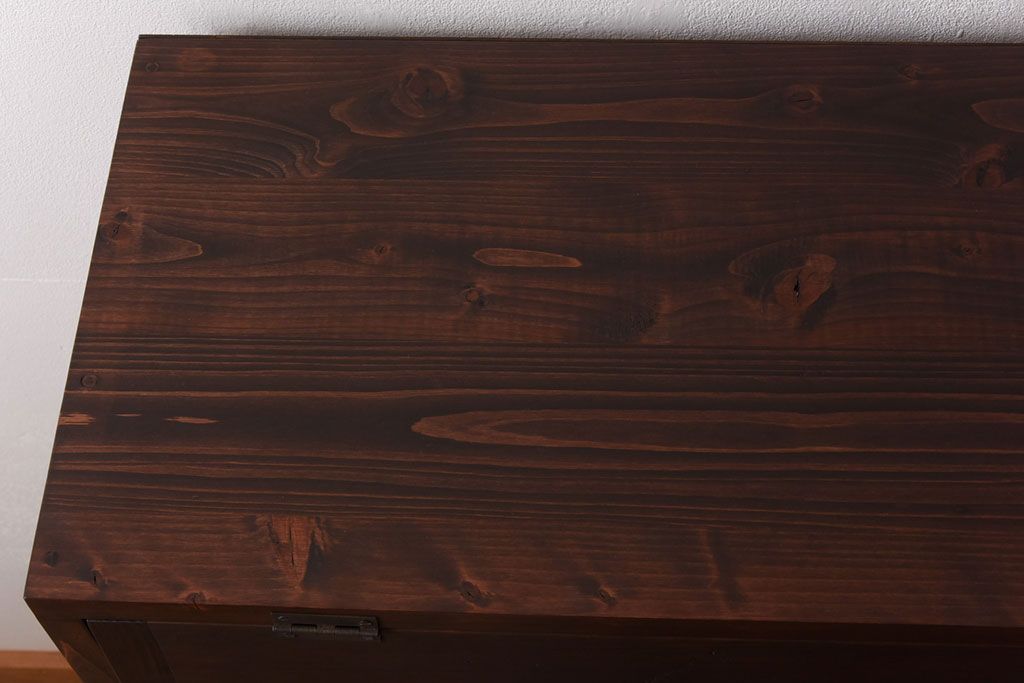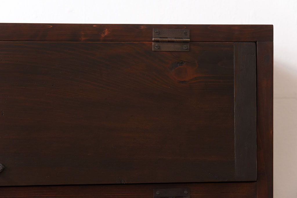 ワードローブ・ロッカー> ロッカー > パタパタ扉の収納棚を新規製作!本体は新材、扉は古材を使用。引手を取り付け。濃い茶色で着色し仕上げ。(下駄箱、ロッカー、キャビネット)