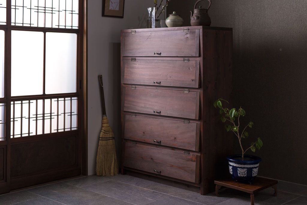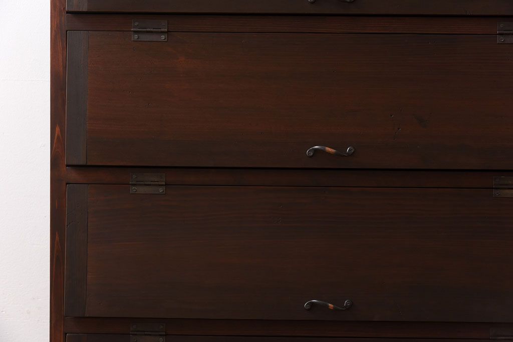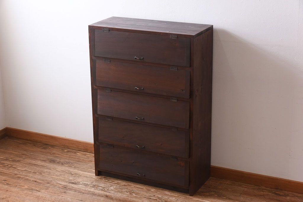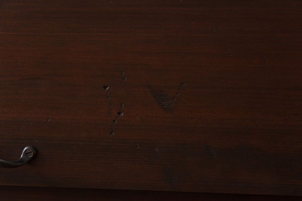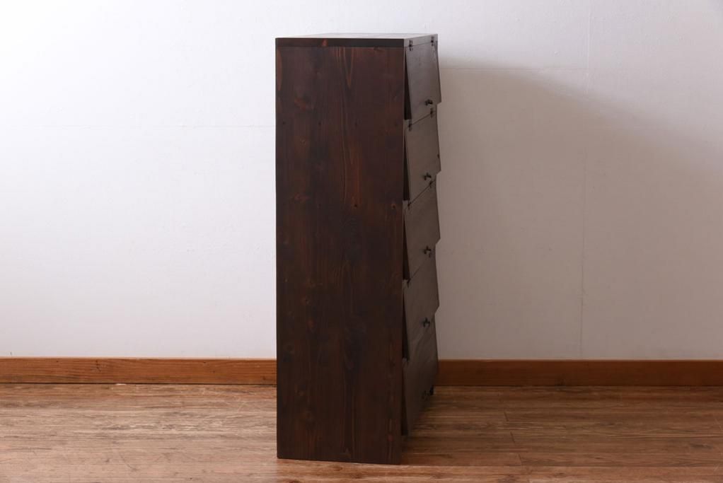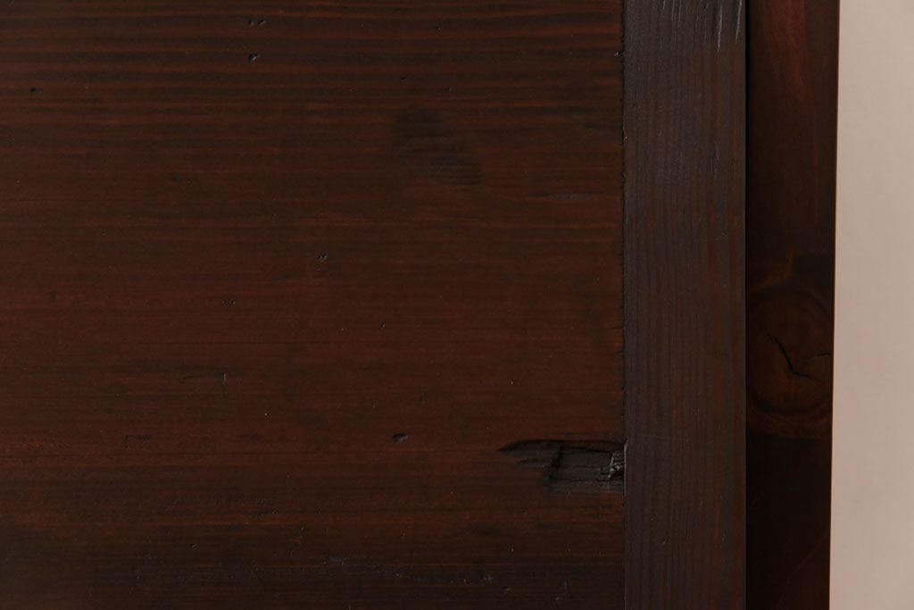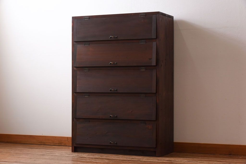 ワードローブ・ロッカー> ロッカー > パタパタ扉の収納棚を新規製作!本体は新材、扉は古材を使用。引手を取り付け。濃い茶色で着色し仕上げ。(下駄箱、ロッカー、キャビネット)