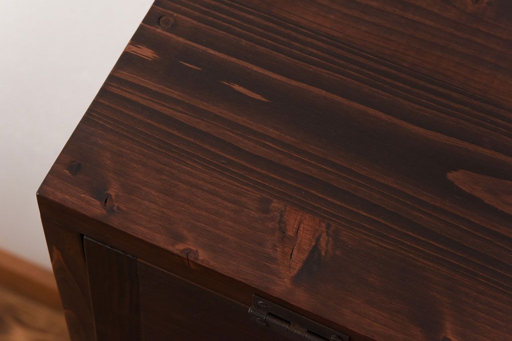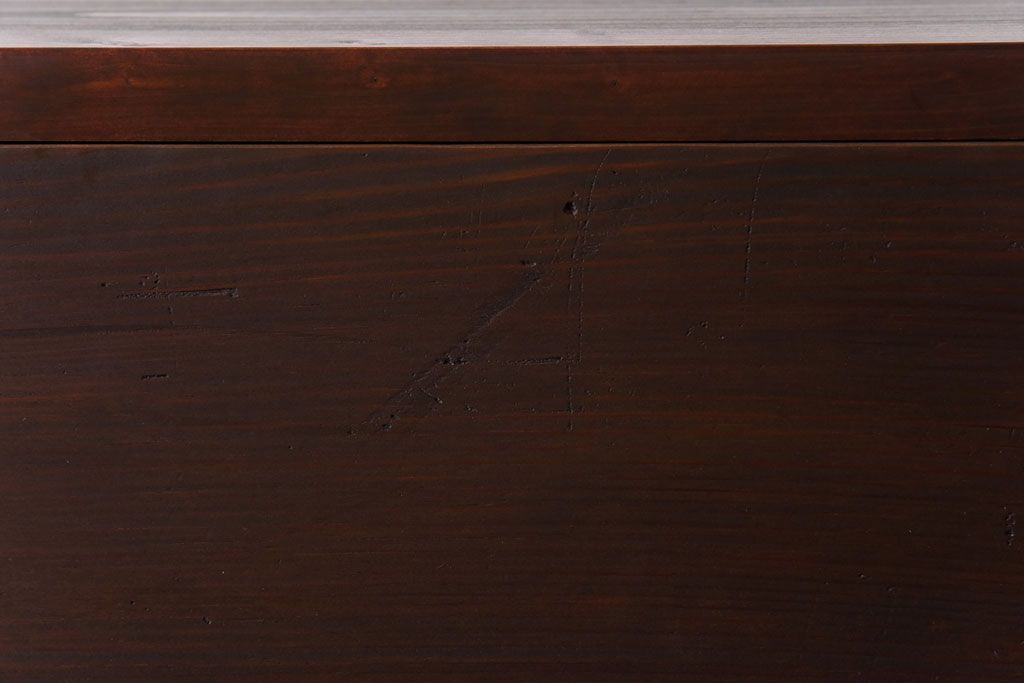 パタパタ扉の収納棚を新規製作!本体は新材、扉は古材を使用。引手を取り付け。濃い茶色で着色し仕上げ。(下駄箱、ロッカー、キャビネット)