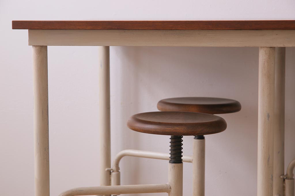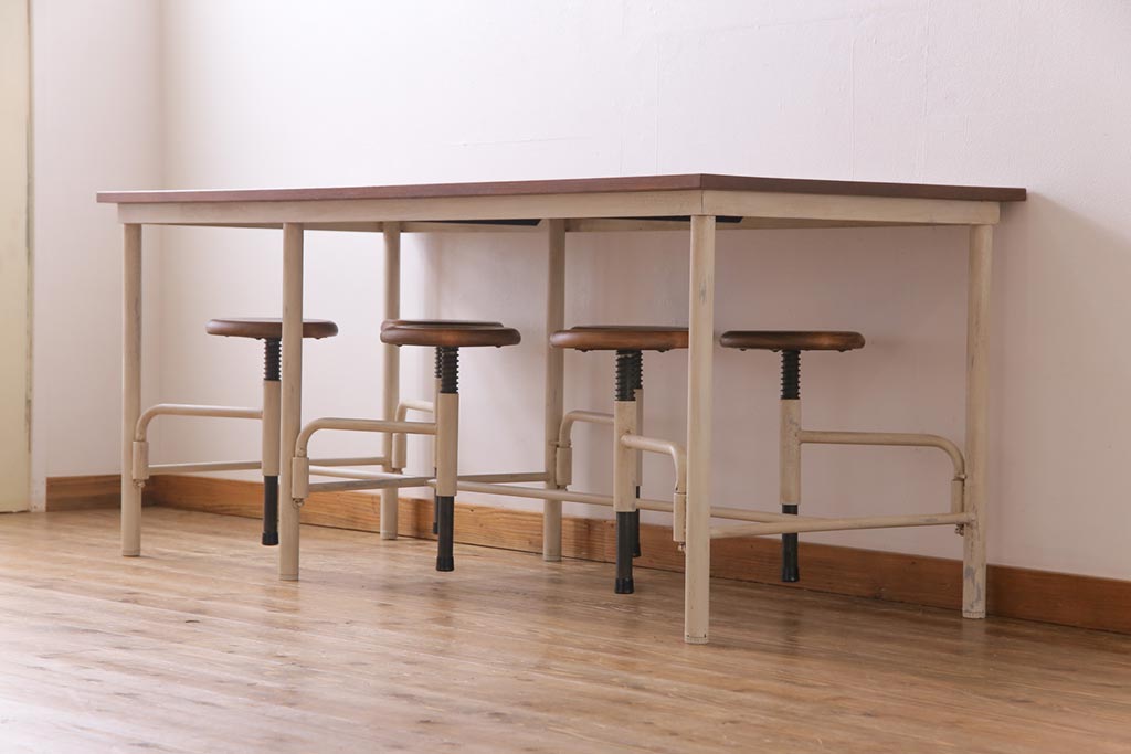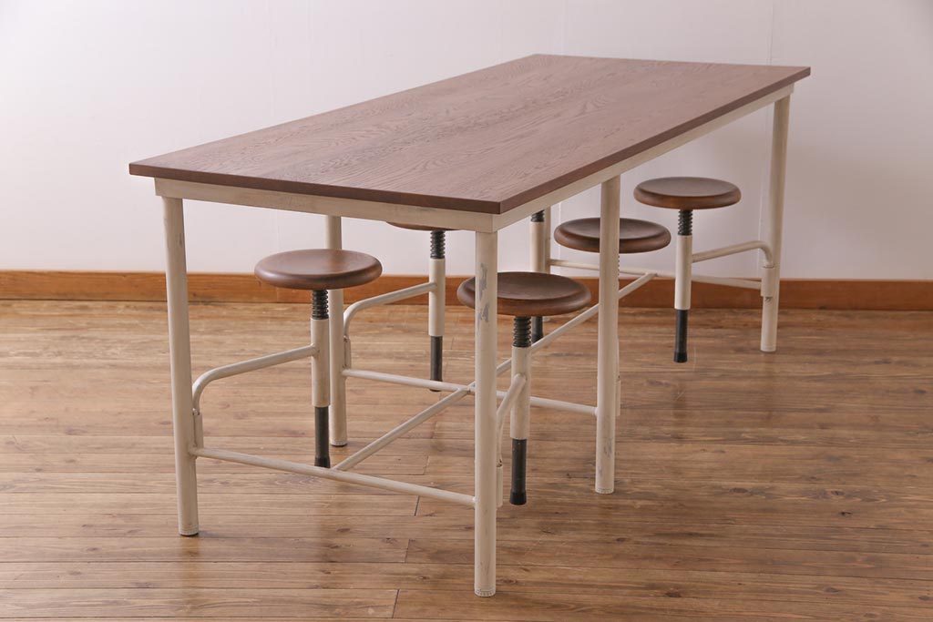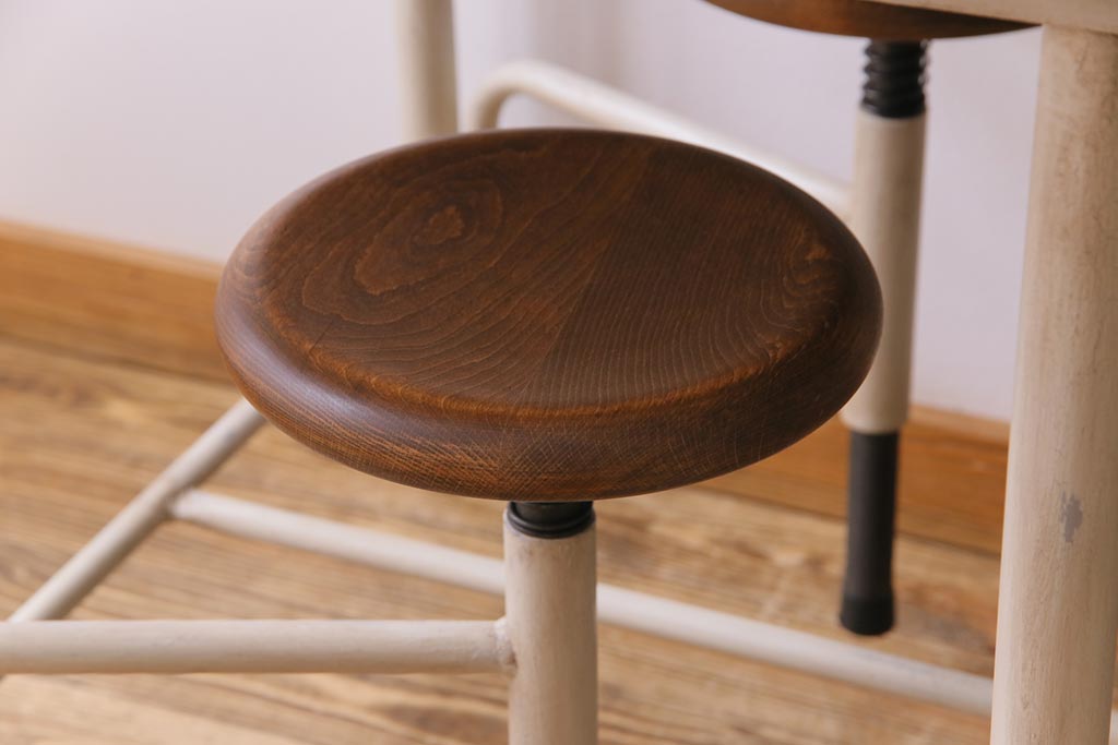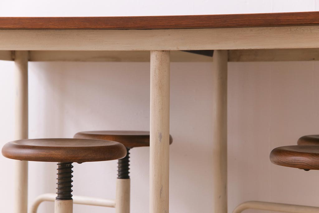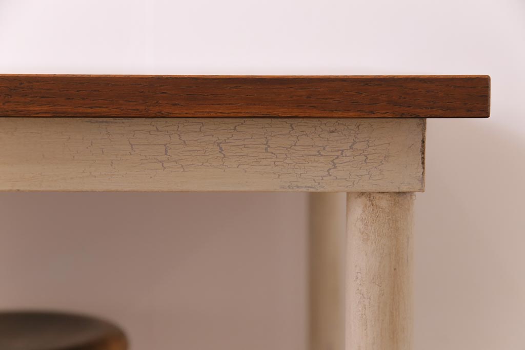フルオーダー家具実績 > 格納スツール6脚付きテーブルを新規製作!ホワイトオーク材の天板を取り付け。アンティークホワイトでペイント仕上げ。(ダイニングテーブル、作業台、椅子)