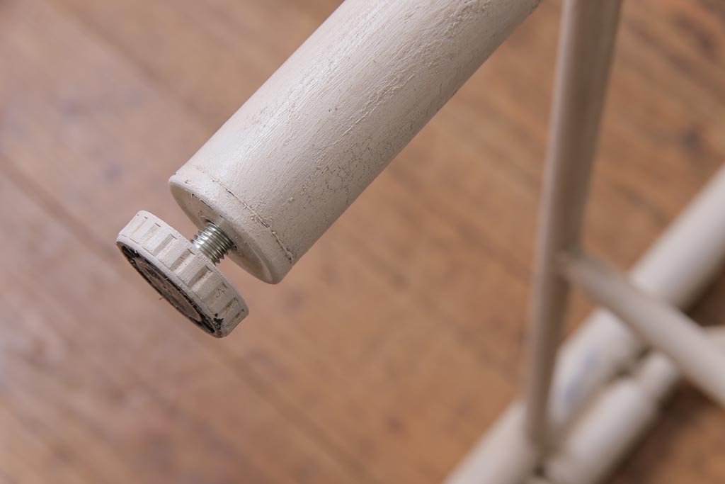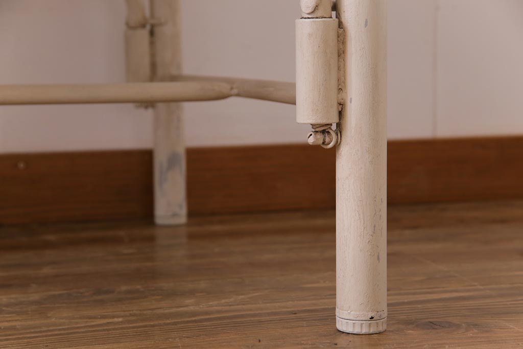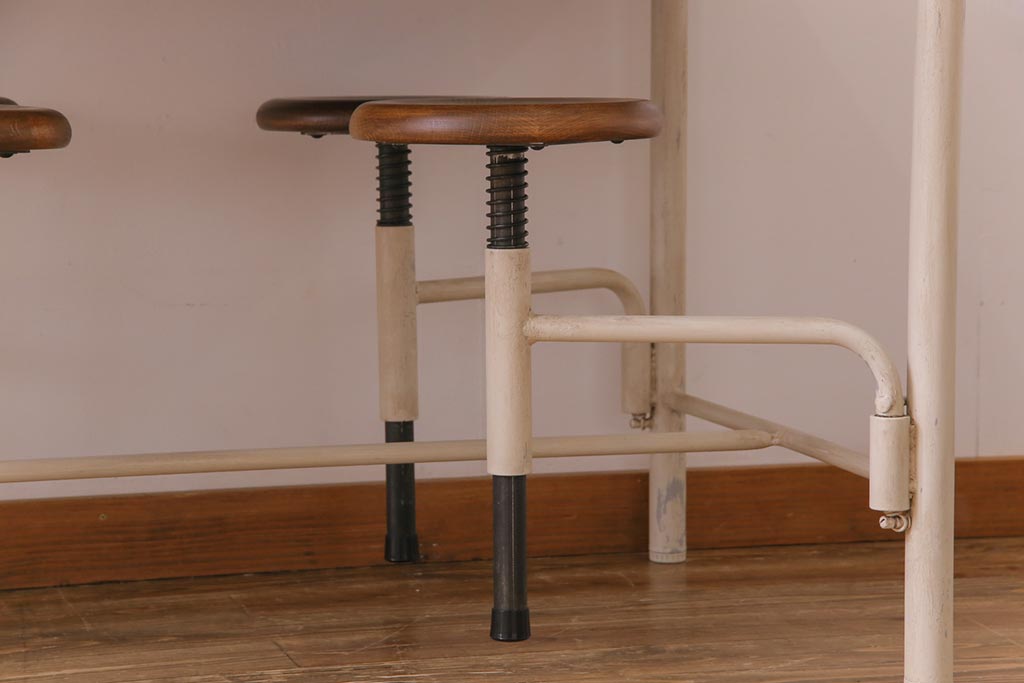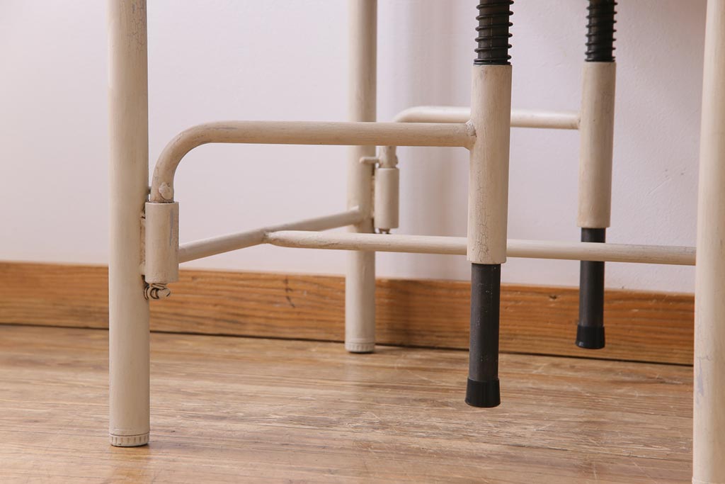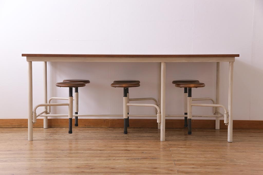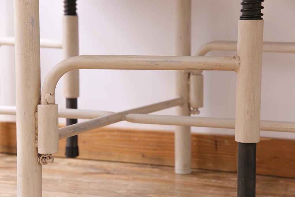 フルオーダー家具実績 > 格納スツール6脚付きテーブルを新規製作!ホワイトオーク材の天板を取り付け。アンティークホワイトでペイント仕上げ。(ダイニングテーブル、作業台、椅子)
