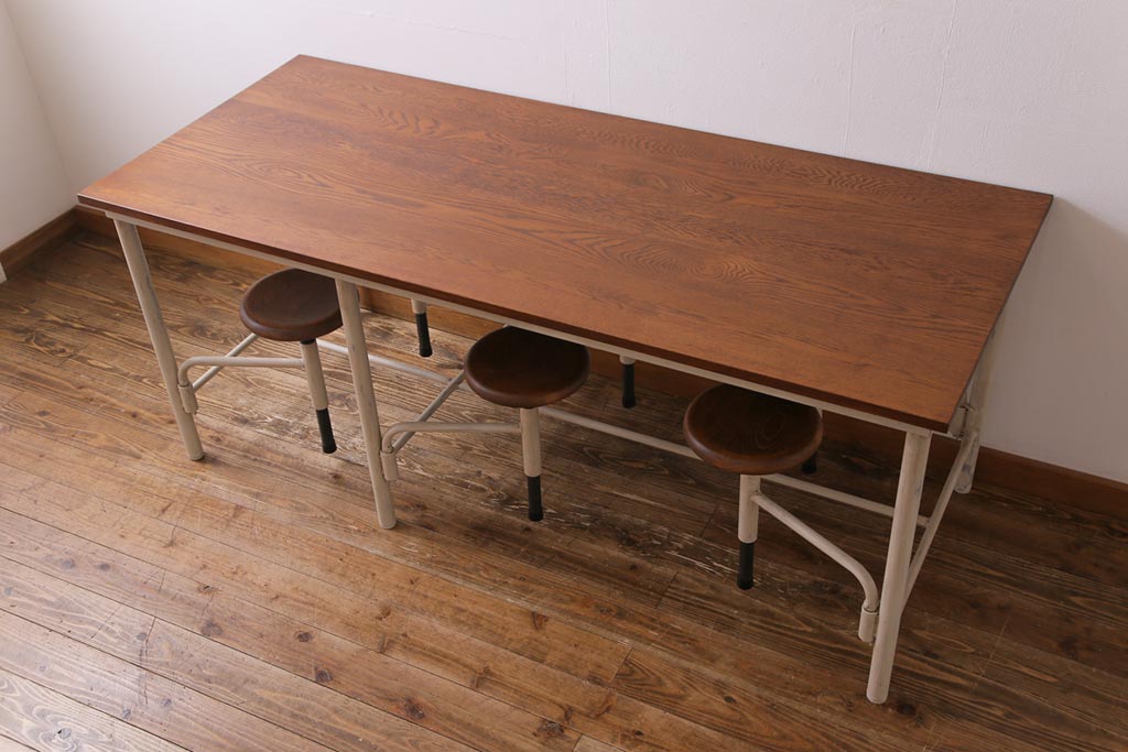 テーブル> 作業台 > 格納スツール6脚付きテーブルを新規製作!ホワイトオーク材の天板を取り付け。アンティークホワイトでペイント仕上げ。(ダイニングテーブル、作業台、椅子)