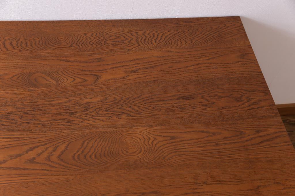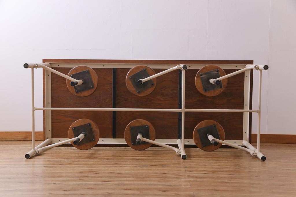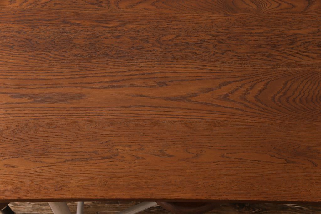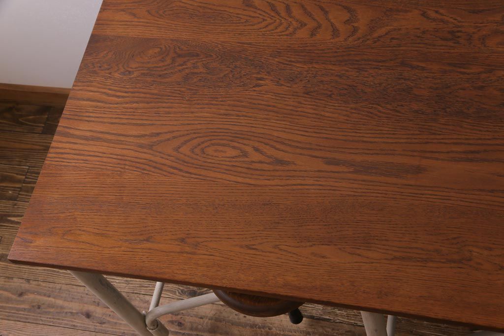 テーブル> 6人用ダイニングテーブル > 格納スツール6脚付きテーブルを新規製作!ホワイトオーク材の天板を取り付け。アンティークホワイトでペイント仕上げ。(ダイニングテーブル、作業台、椅子)
