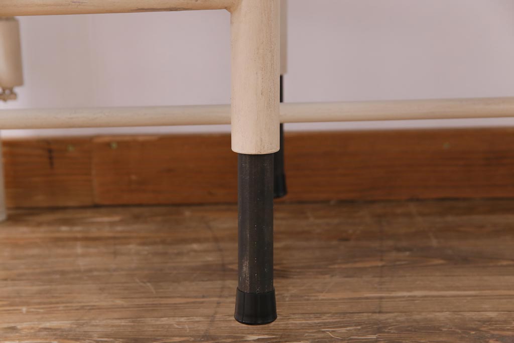 格納スツール6脚付きテーブルを新規製作!ホワイトオーク材の天板を取り付け。アンティークホワイトでペイント仕上げ。(ダイニングテーブル、作業台、椅子)