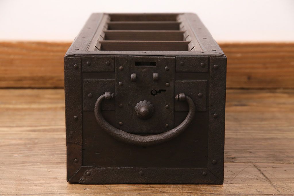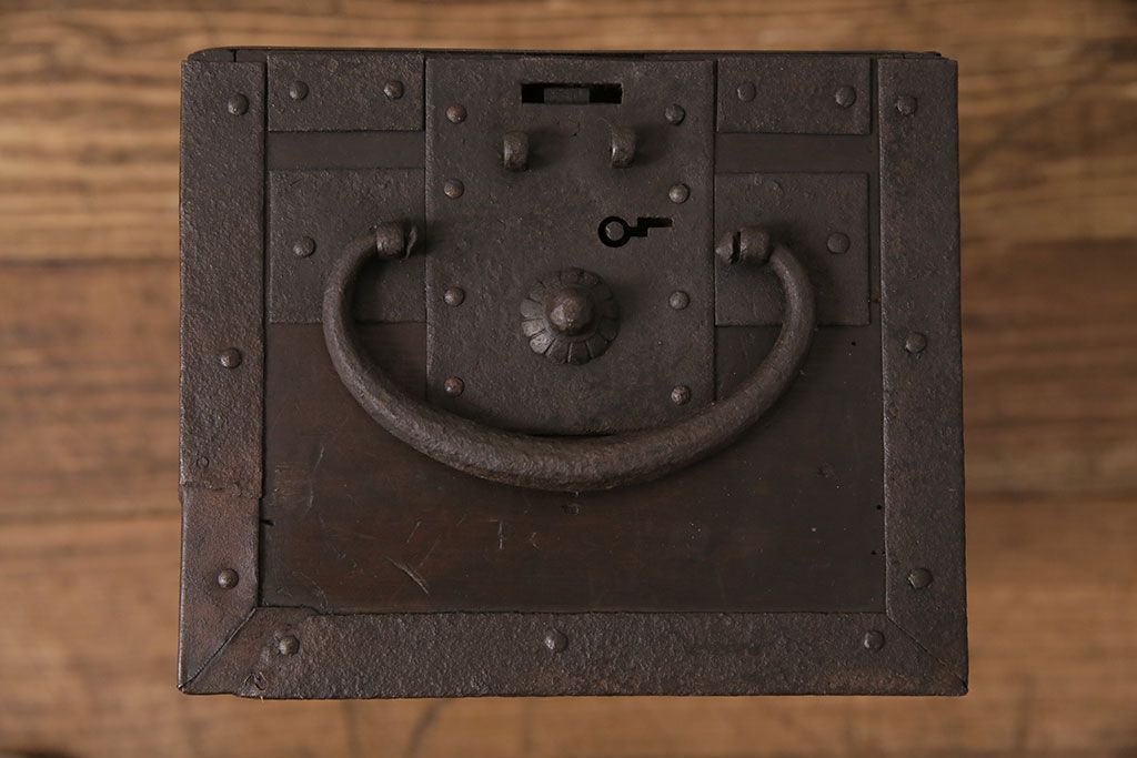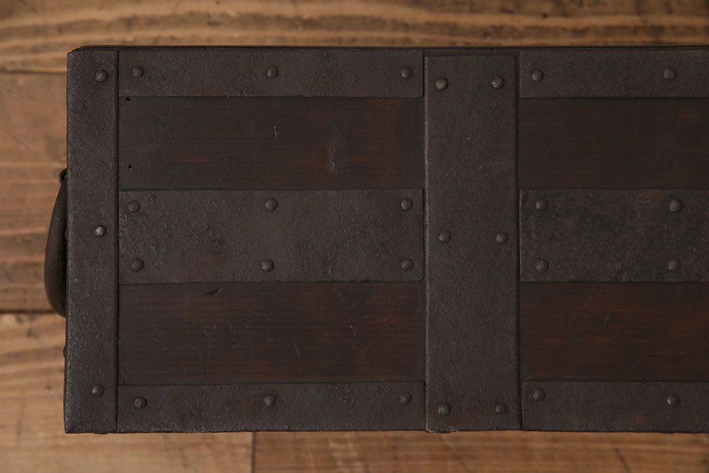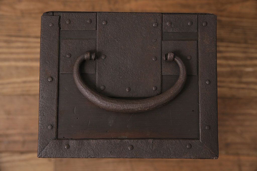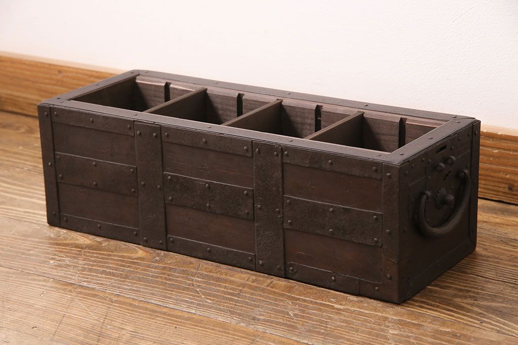 小物収納・トランク > アンティーク雑貨 リメイク 錆びた風合いの金具がかっこ良い松材製の千両箱(収納箱、木箱)(R-049177)