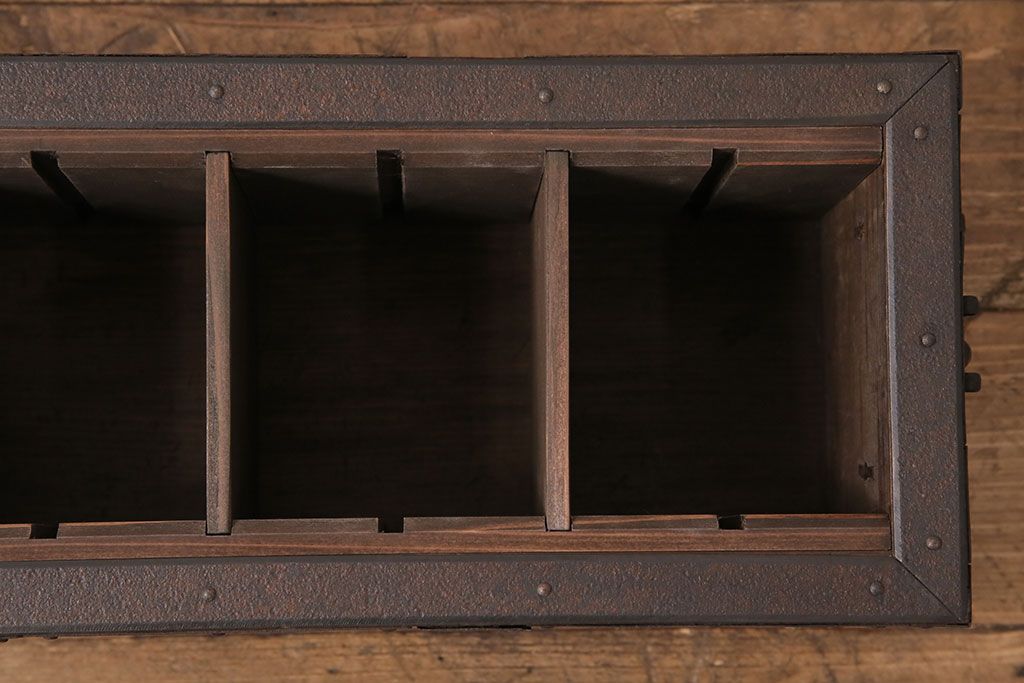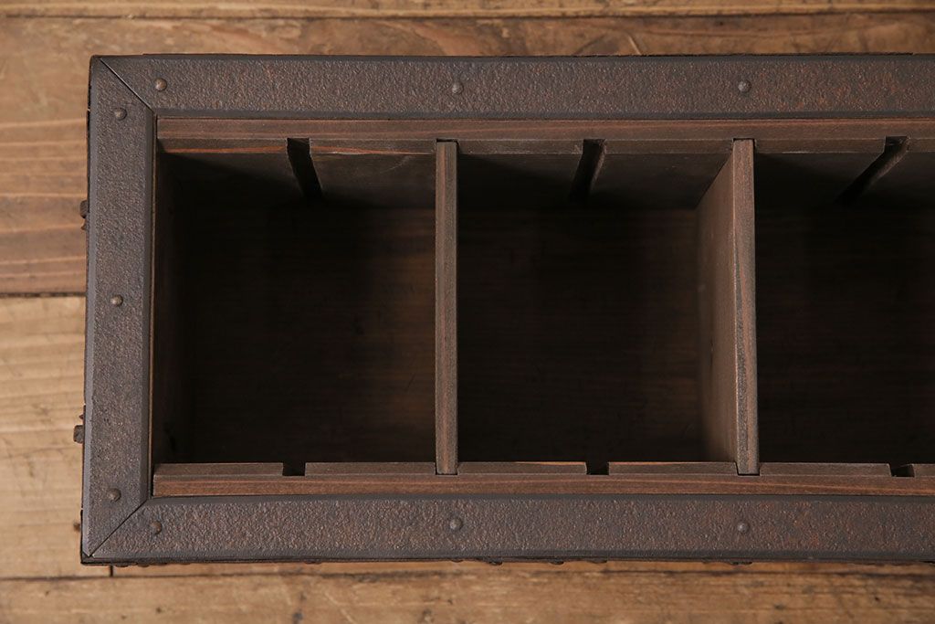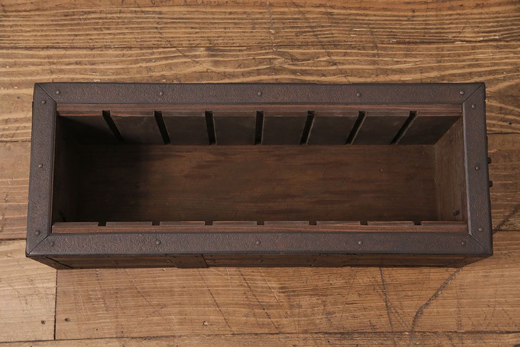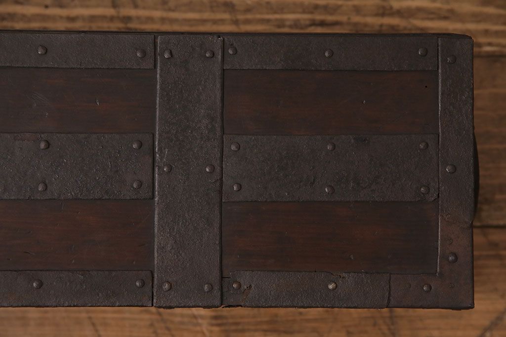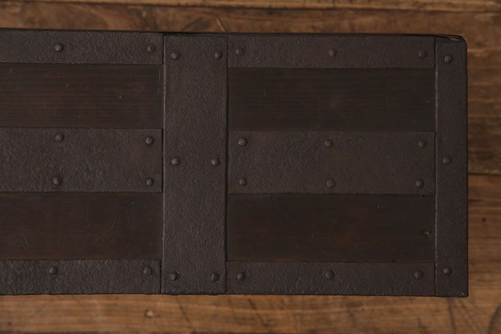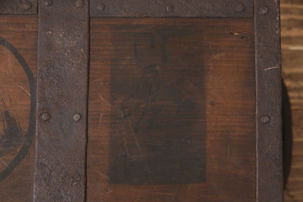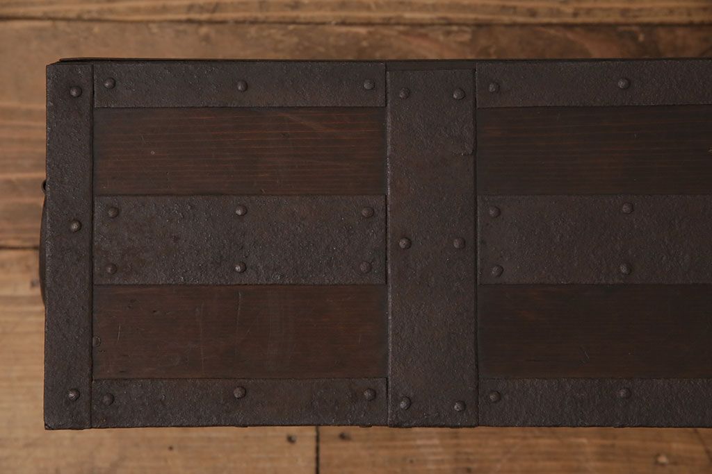 アンティーク雑貨 リメイク 錆びた風合いの金具がかっこ良い松材製の千両箱(収納箱、木箱)(R-049177)