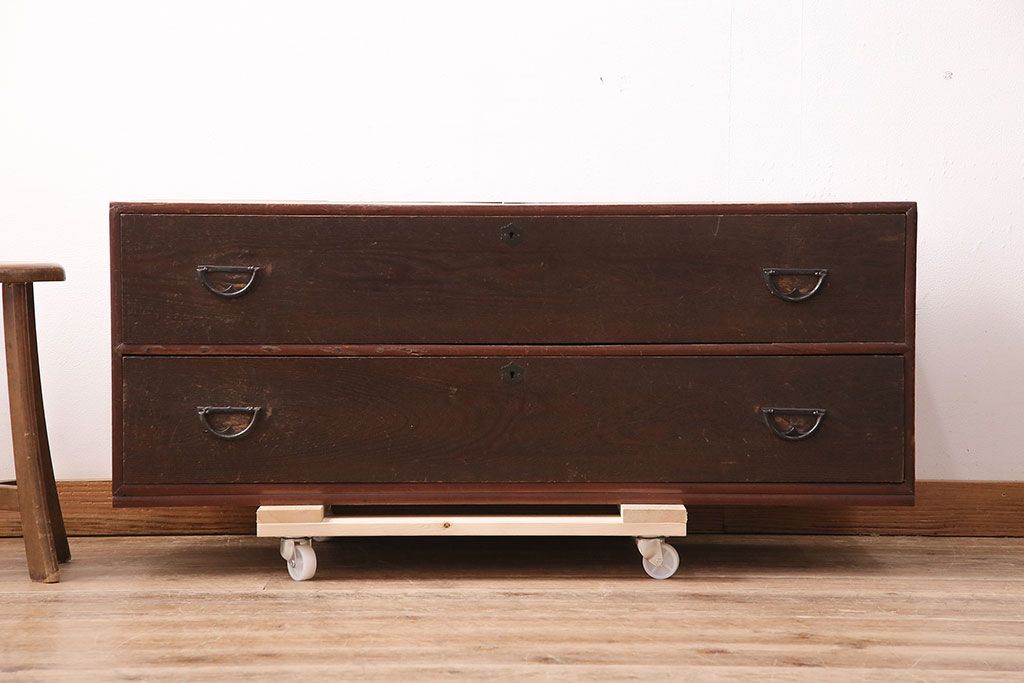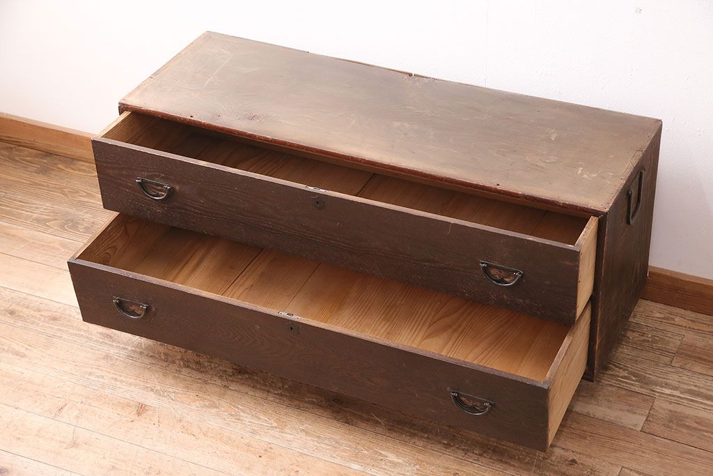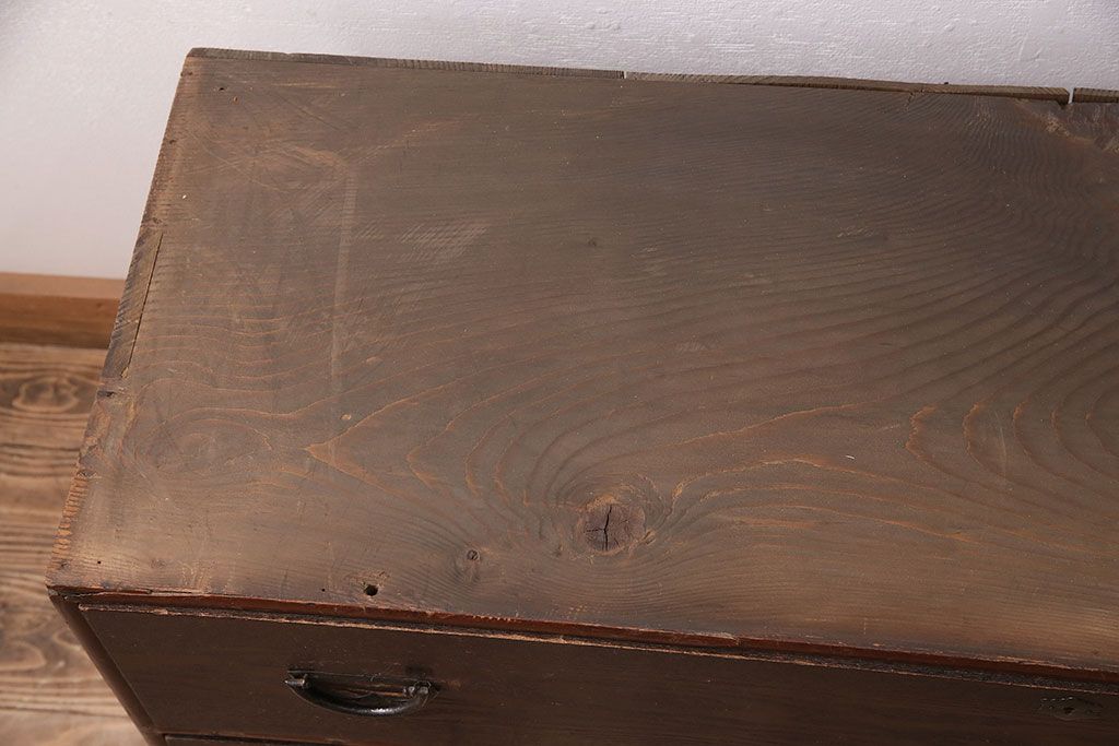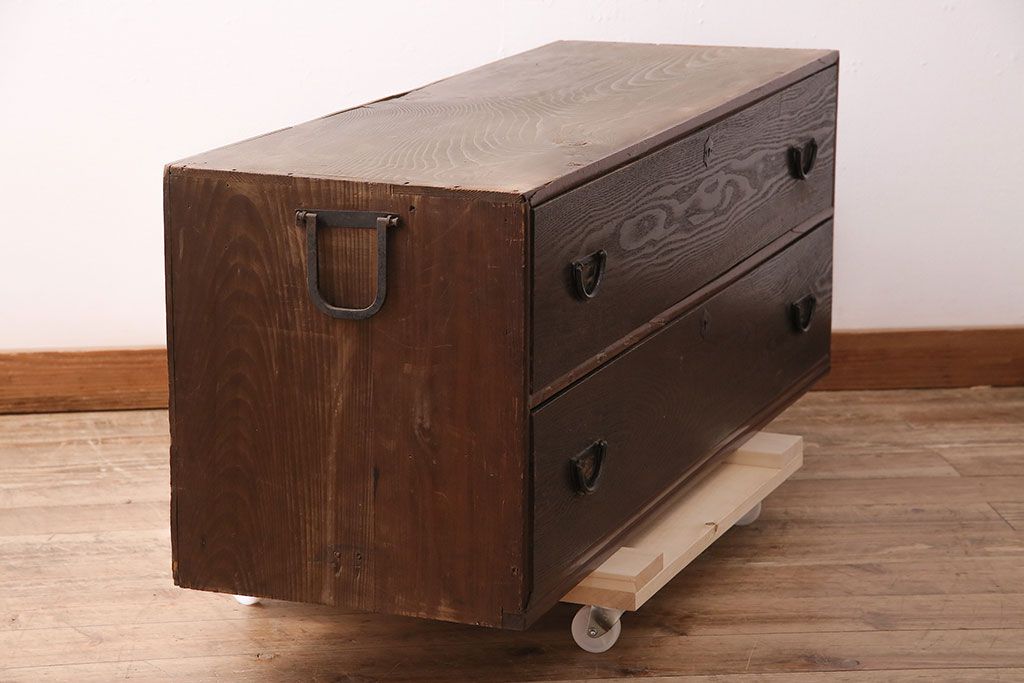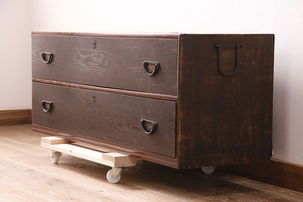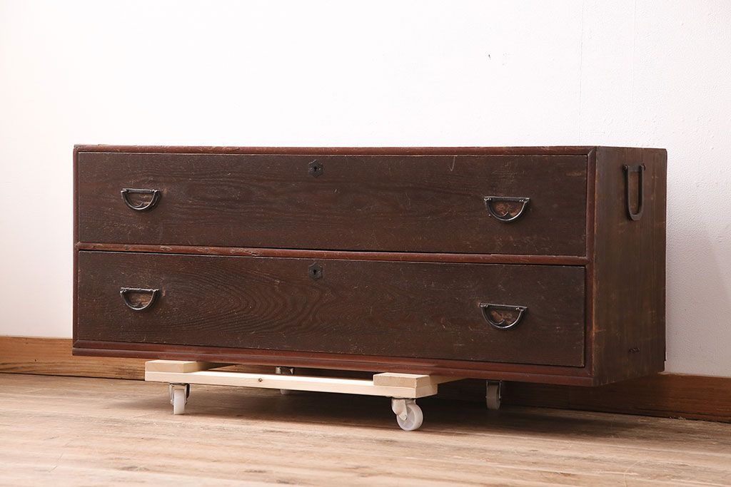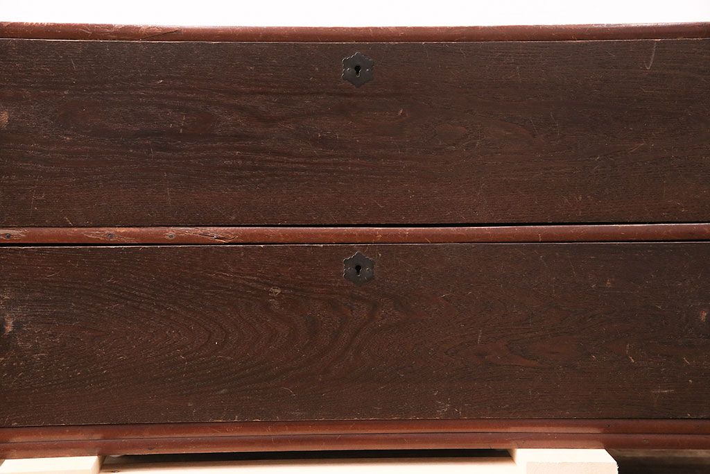 キャビネット・戸棚> テレビ台・ローボード > 和製アンティーク 年月を重ねた味わいが魅力的な前面栓材製の箪笥ローボード(衣装箪笥、時代箪笥、チェスト、引き出し)(R-047989)
