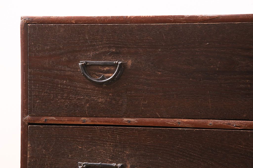 和箪笥 > 和製アンティーク 年月を重ねた味わいが魅力的な前面栓材製の箪笥ローボード(衣装箪笥、時代箪笥、チェスト、引き出し)(R-047989)