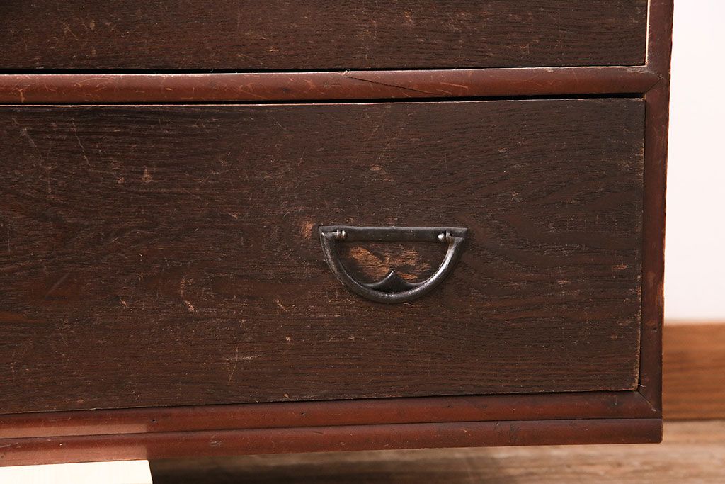 和製アンティーク 年月を重ねた味わいが魅力的な前面栓材製の箪笥ローボード(衣装箪笥、時代箪笥、チェスト、引き出し)(R-047989)